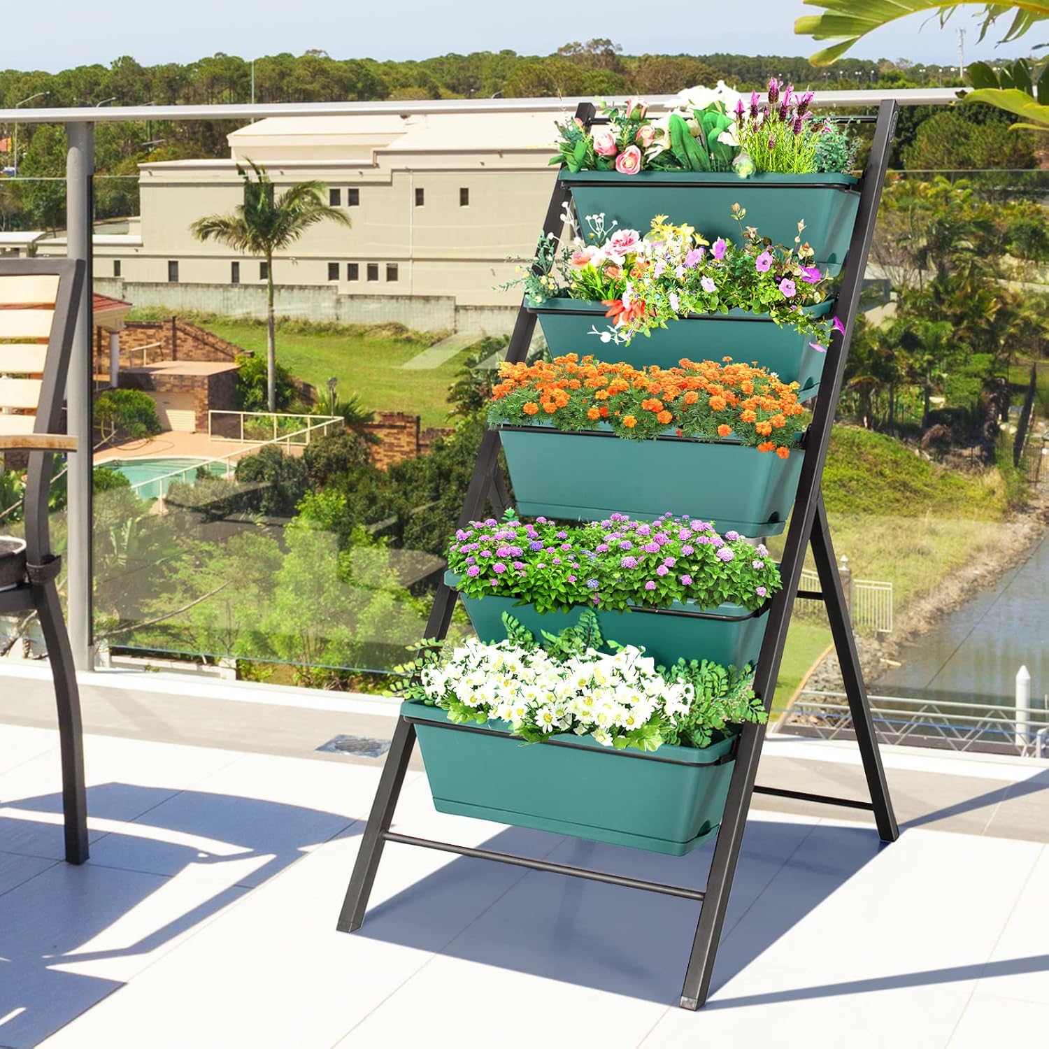 S AFSTAR 5-Tier Vertical Garden Planter, 5-Layer Raised Garden Bed with 5 Detachable Planter Boxes & Metal Frame, Indoor Outdoor Elevated Planting Containers for Flower Vegetables Fruit Herbs