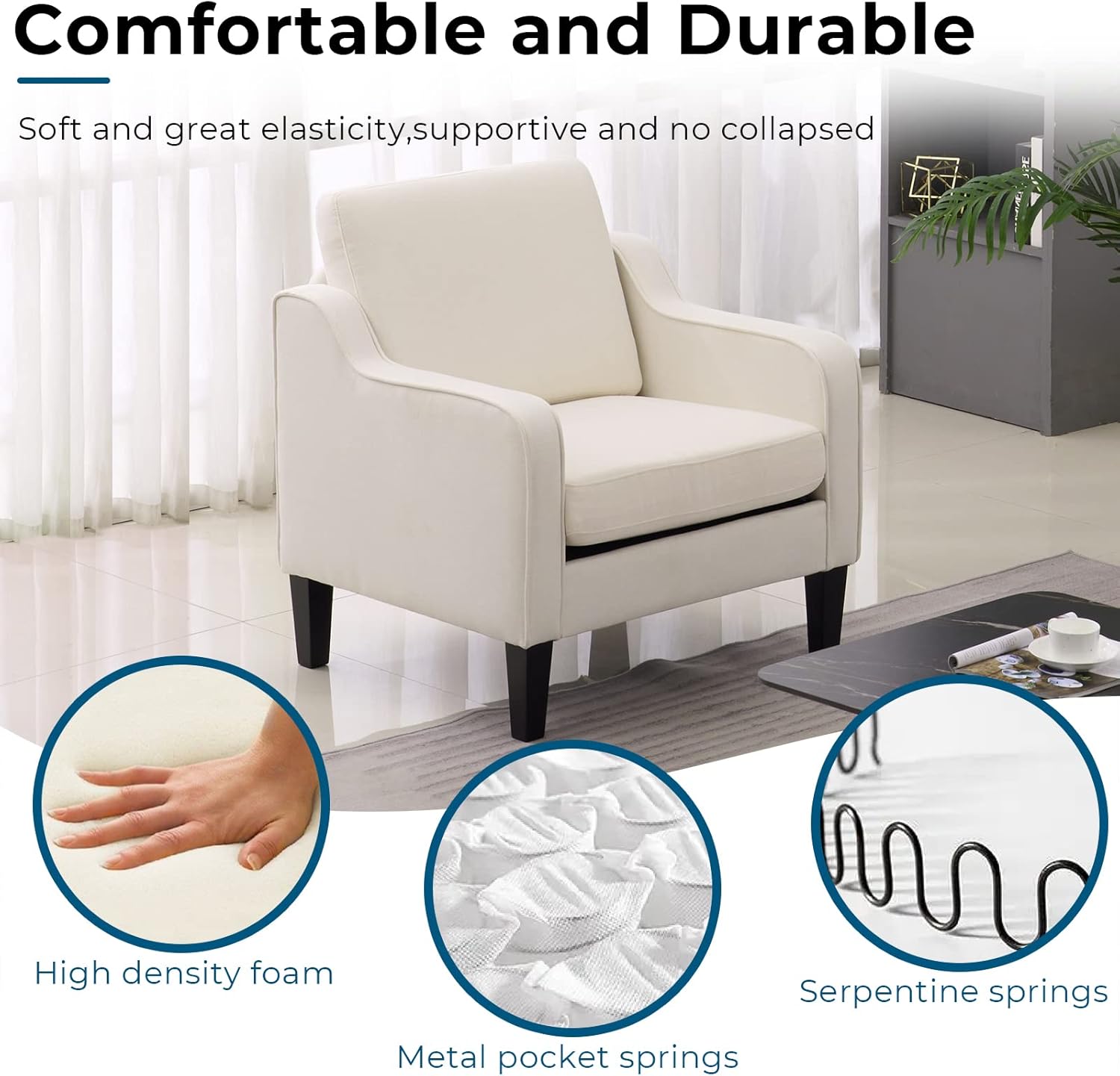 - Built to Last:With soft and durable linen fabric upholstery,a sturdy metal and wooden frame,our living room accent chair provides great support with 380lbs weight limit and will stand the test of time.Metal backrest is adopted for a better sitting angle and long-term use.