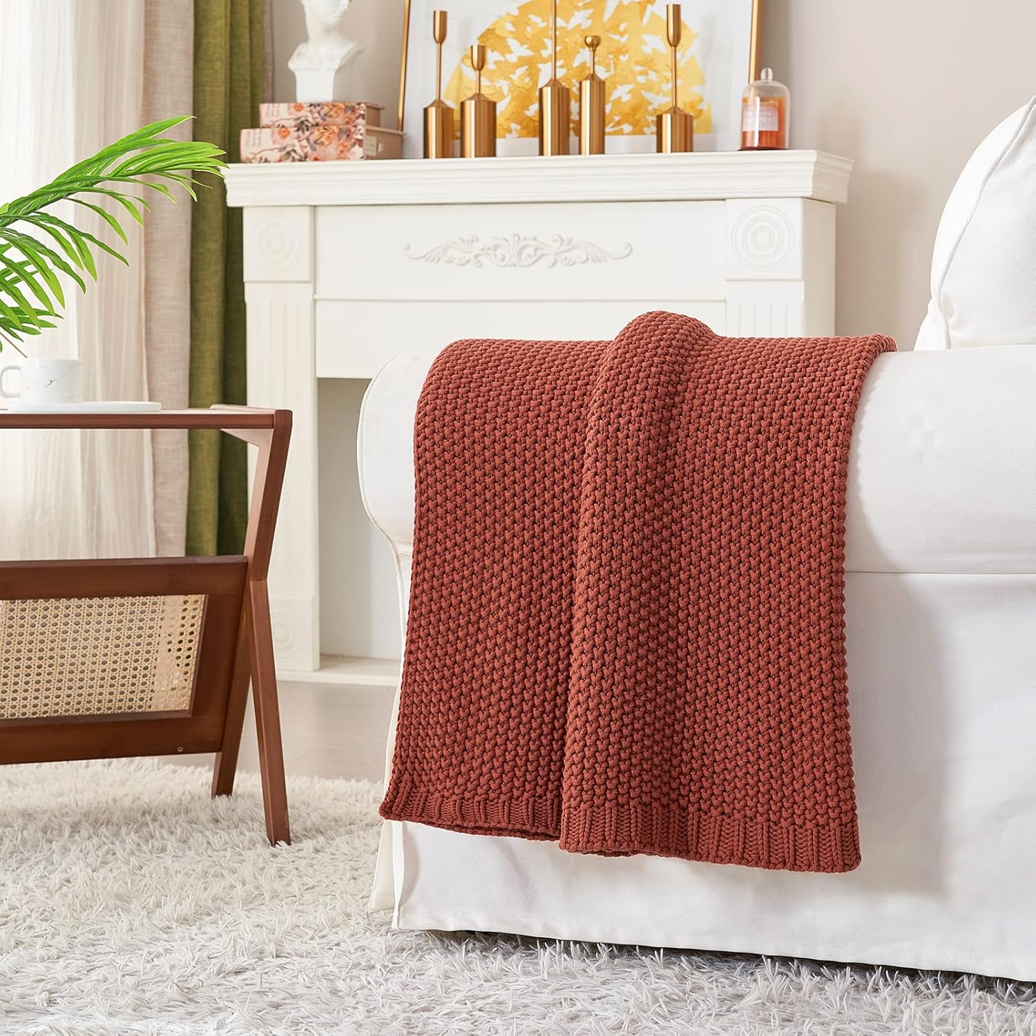 Longhui bedding Chunky Cable Knit Throw Blanket Lightweight Rust 100% Organic Cotton Blanket for Sofa Couch Bed Baby Nursery, Rustic Shabby Chic Modern Farmhouse, 51” x 63” Give Laundering Bag