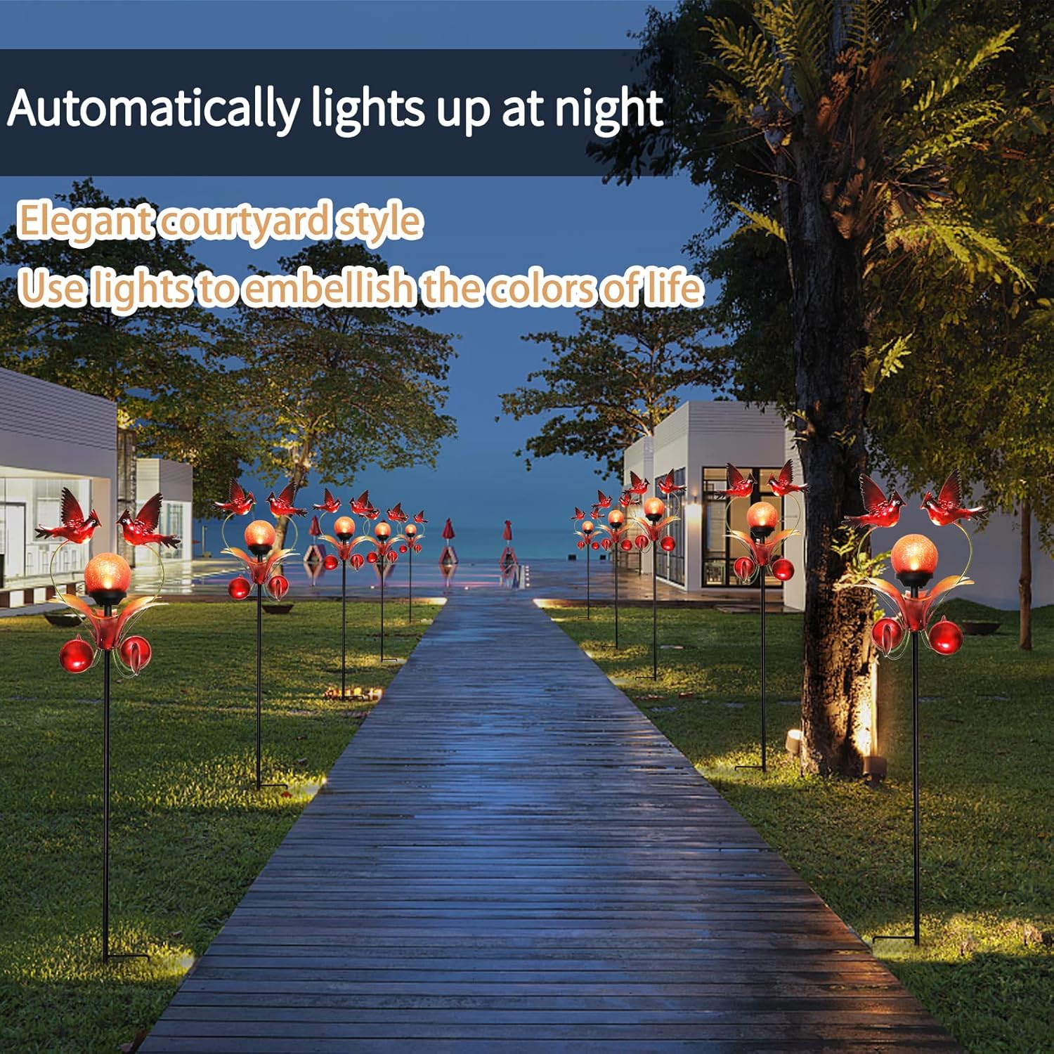 - Easy to Install - Simple assembly structure without extra screws, wiring or external electricity required. Just stick the cardinal garden stake into the soil, turn it on using the solar panel's power button, then enjoy your garden ornament as it softly glows automatically from dusk.