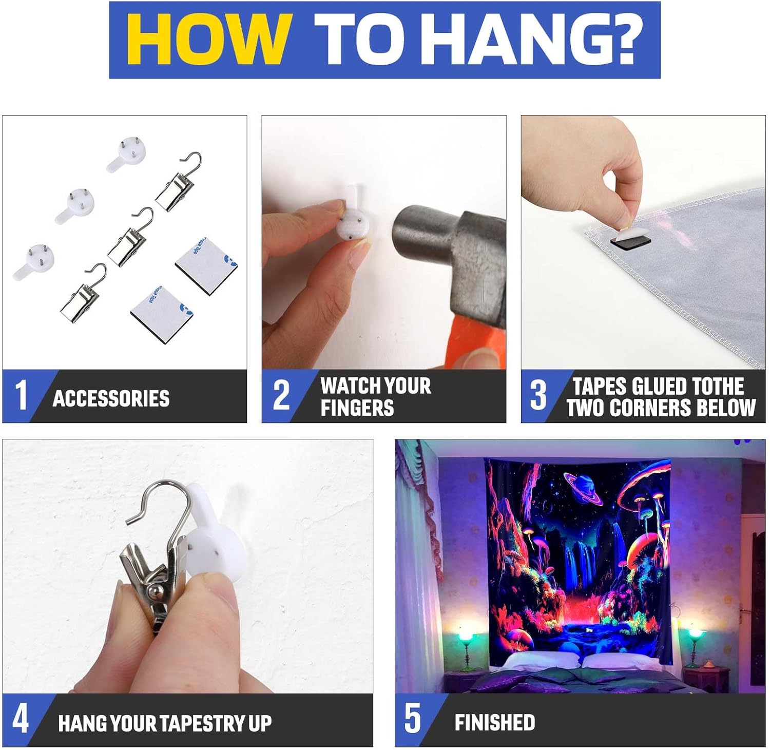ADDWel Blacklight Mushroom Planet Tapestry, Black Fantastic Tapestry Glow In The Dark, UV Reactive Black Light Posters Wall Hanging for Bedroom Dorm Living Room Backdrop Decor