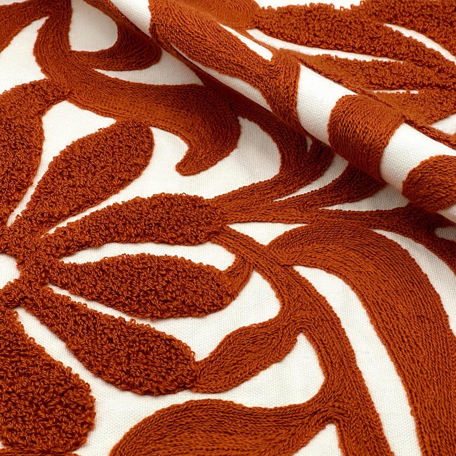 Alysheer Farmhouse Floral Leaves Embroidered Decorative Throw Pillow Cover 18x18 inches, Boho Tufted Flowers Embroidery Pattern Chic Cotton Cushion Case for Couch Bed Sofa Living Room(Burnt Orange)