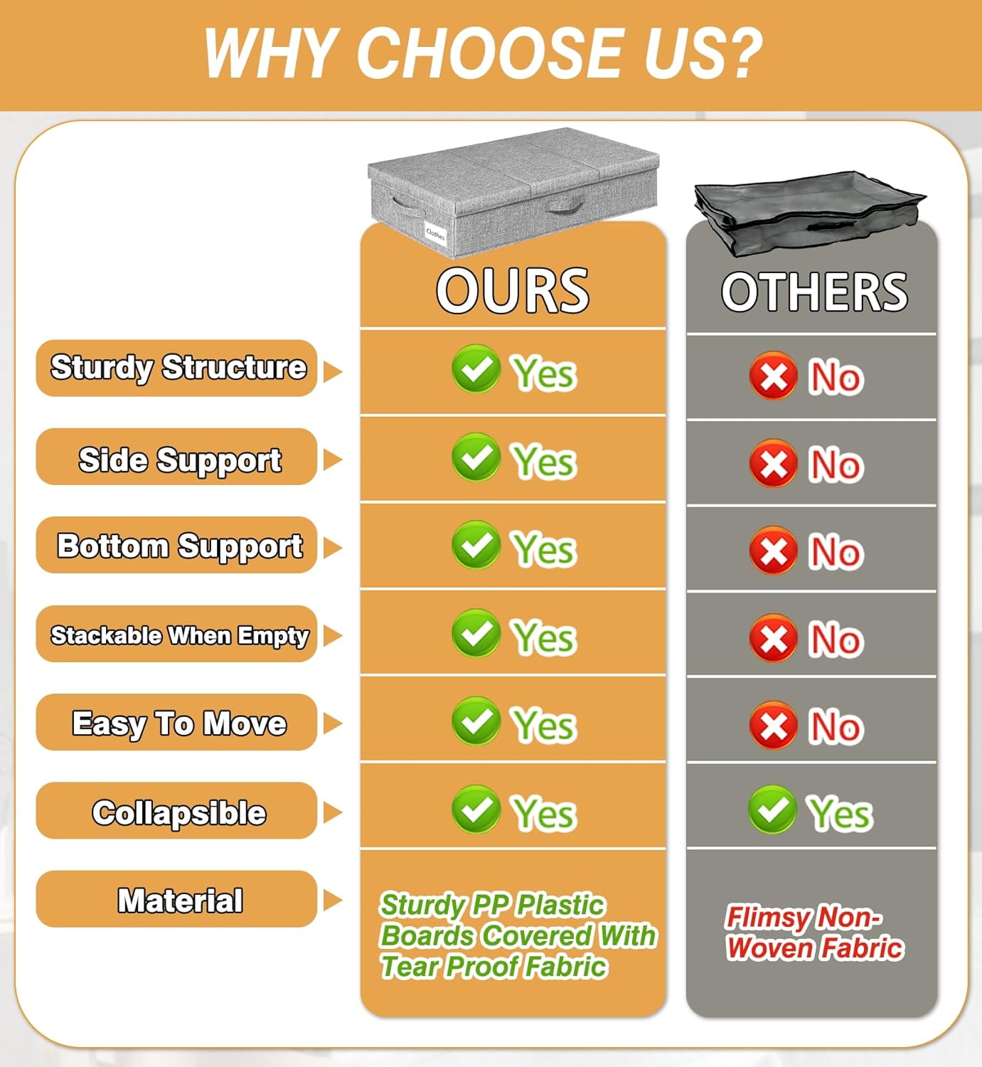 - MULTIPURPOSE STORAGE: Large, durable containers for organizing are perfectly sized to slide right under the bed. The storage bins underbed is perfect for use as under bed shoe storage organizer, under bed blanket storage, clothing storage under bed, under storage bins under bed, under the bed drawers stackable storage bins with lids, under crib storagen