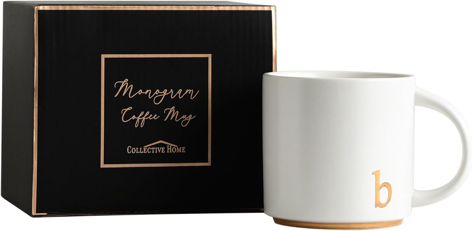 COLLECTIVE HOME - Monogram Ceramic Mugs, 15 oz Golden Initial Coffee Cups, Elegant Alphabet Tea Mugs, Elegant Personalized Mug with Gift Box, Luxurious Cups for Office and Home (b)
