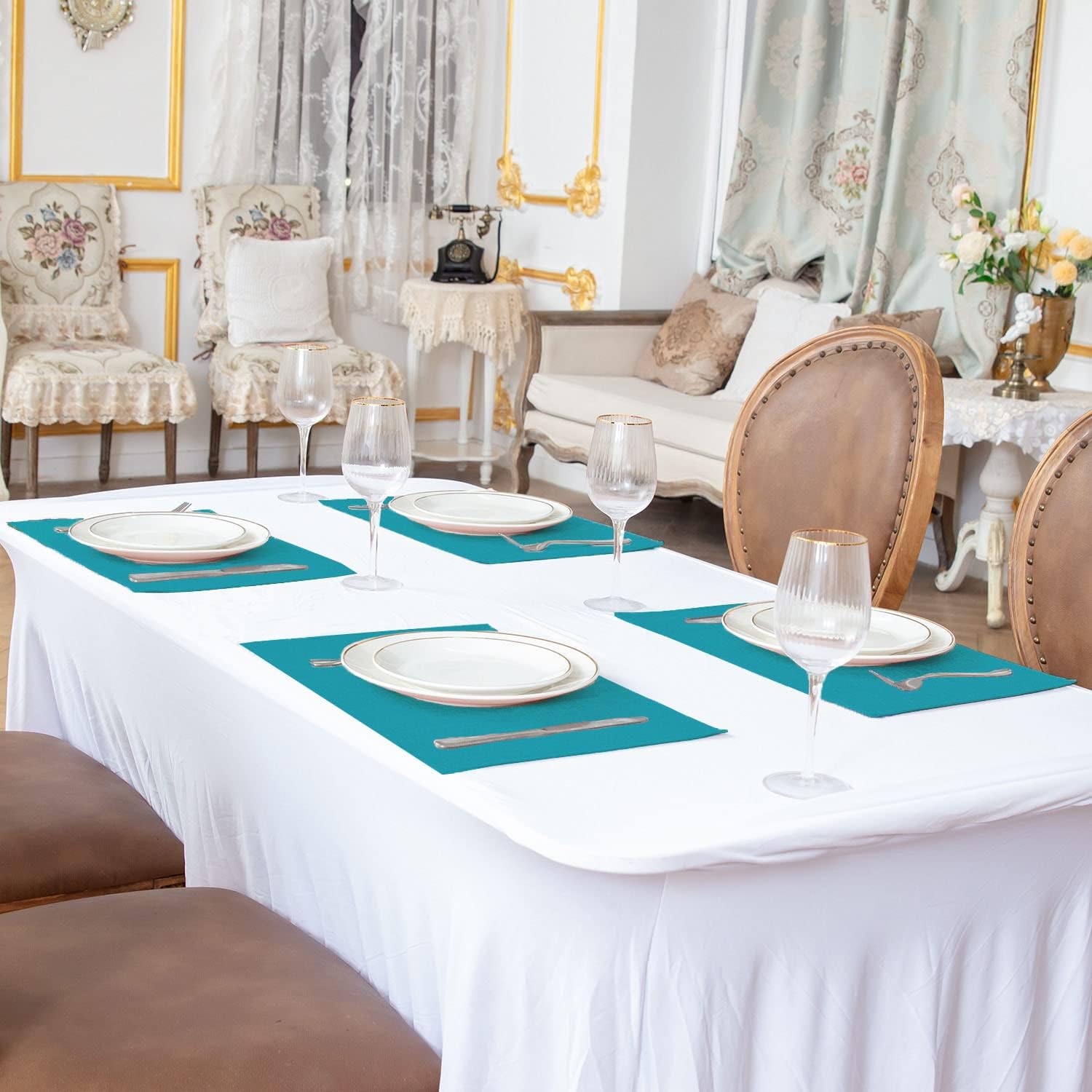 - [SUITABLE FOR DAILY USAGE ON THE TABLE] The placemats are durable and suitable for daily use of kitchen table and dinner table or other furniture such as wooden bedroom nightstands, arm chair covers, glass tabletop. And it can also be a decoration for various seasons such as Thanksgiving, Valentine's Day, Easter, Christmas.