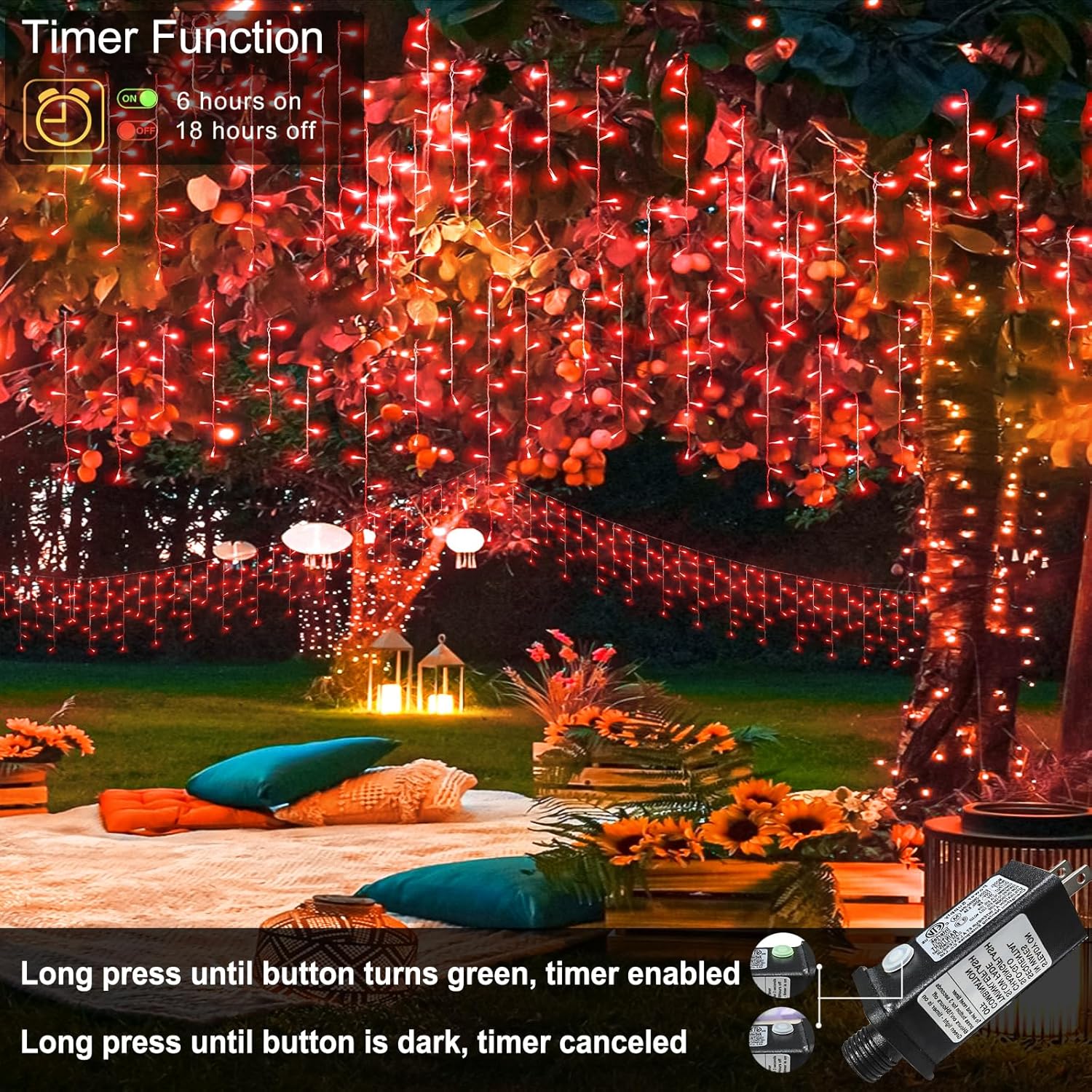 - Memory and Timer Function: The icicle lights could recover from the previous setting mode when you restart, no need to reset the mode every time. Press and hold the button on the adapter for 3 seconds until the green light on, then the timer function start, 6 hours on 18 hours off. This smart and convenient icicle string lights is the best choice for your holiday decoration.