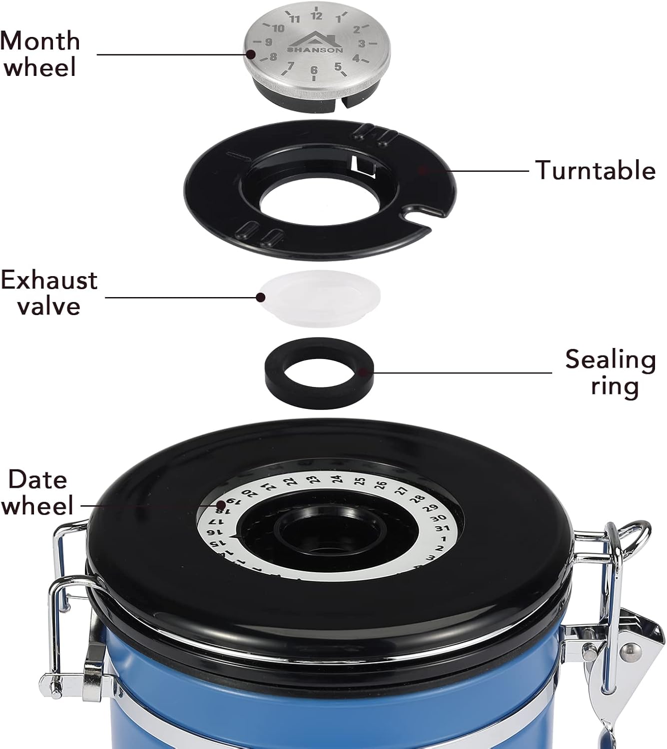 ShanSon Coffee Canister Airtight Coffee Container Stainless Steel Coffee Bean Storage Container with CO2 Release Valve and Scoop Coffee Canister for Beans,Grounds,Sugar,Flour,Tea,Cereal,22OZ,Blue