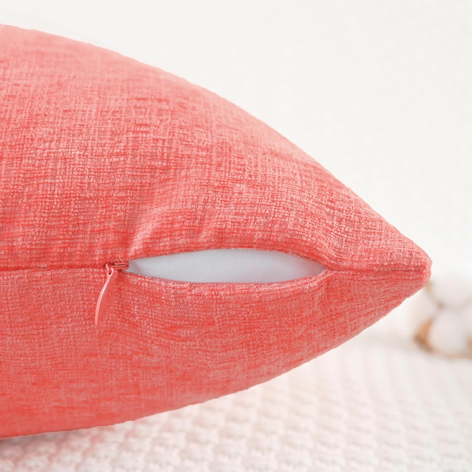 CaliTime Throw Pillow Covers Decorative 18 X 18 Inches Pack of 4 Cozy Chenille Cushion Cases for Couch Sofa Bed Living Room Home Living Coral