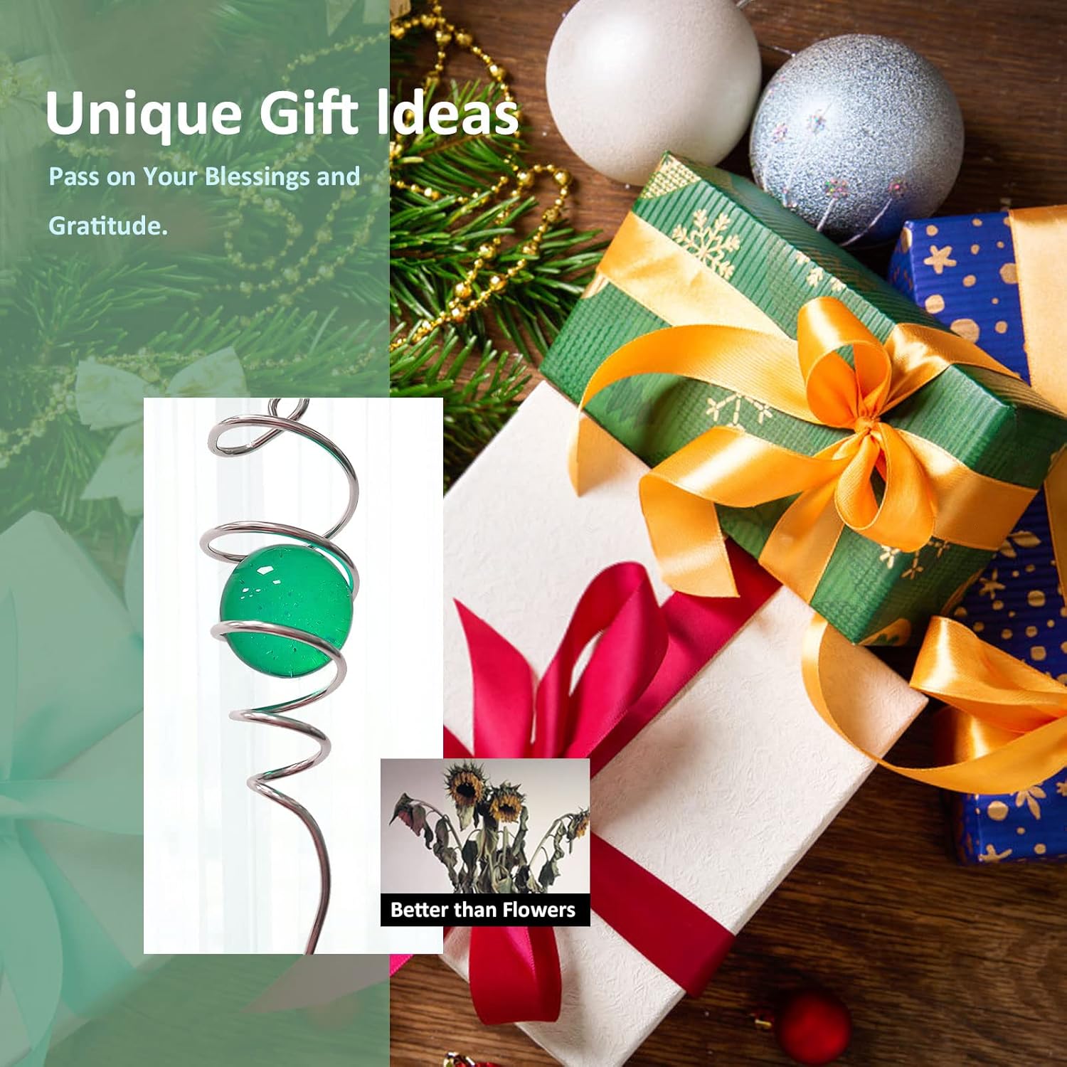 - 【Unique Spiral Design】The gazing ball spiral is an unique hanging ornament ,Also it can help to stabilize 3D wind spinners or yard decor from swing when it rotate.When the spiral tail rotates to the left, the glass ball seems to move upwards,when the spiral tail rotates to the right, the glass ball seems to moves downward,the glass ball seems to like floating and dancing in air, presenting a magical optical illusion!