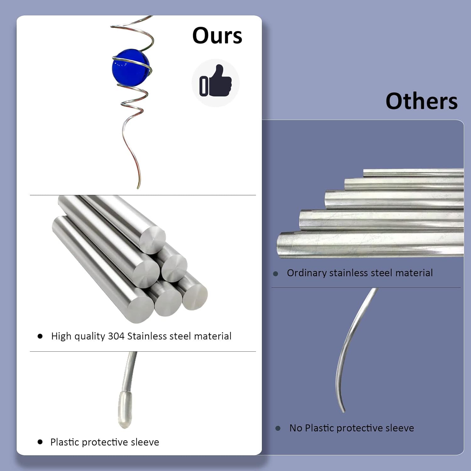 - 【High Quality】11inch heightWind Spinner Stabilizer spiral tail made of #304 stainless steel wire,the 2inch colored ball made of pure solid color glass material,have good weather resistant,no fading under sunshine. Better quality than iron material with nickle plating and painting color glass ball in the market.