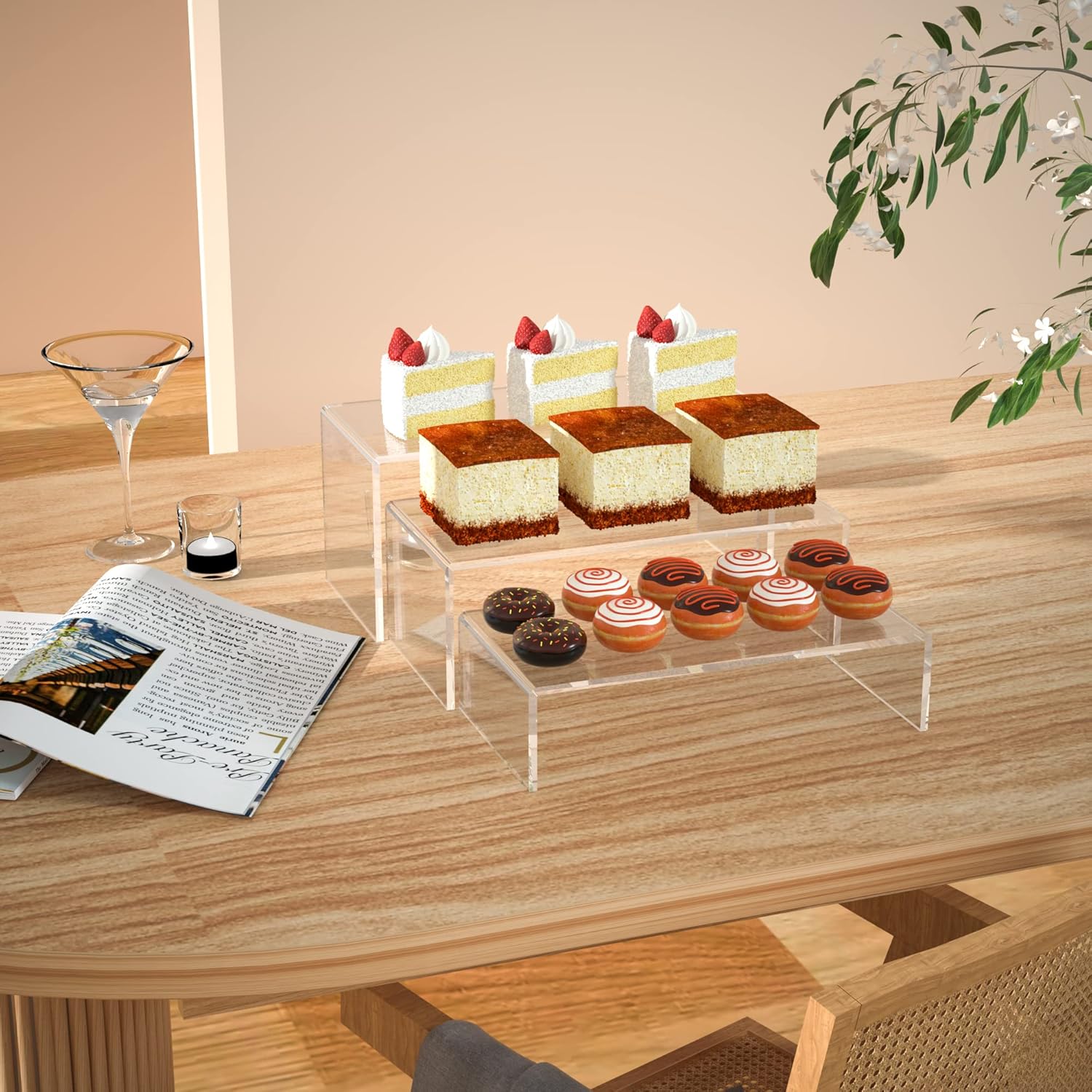 Clear Riser Shelf 3pcs, Desktop Rectangular Acrylic Display Shelves Organizer, Acrylic Stands for Funko Pop Figure, Perfumes, Bags, Shoes, Glasses, Plants, Toys, Collectibles - 8''x8.5''x9''