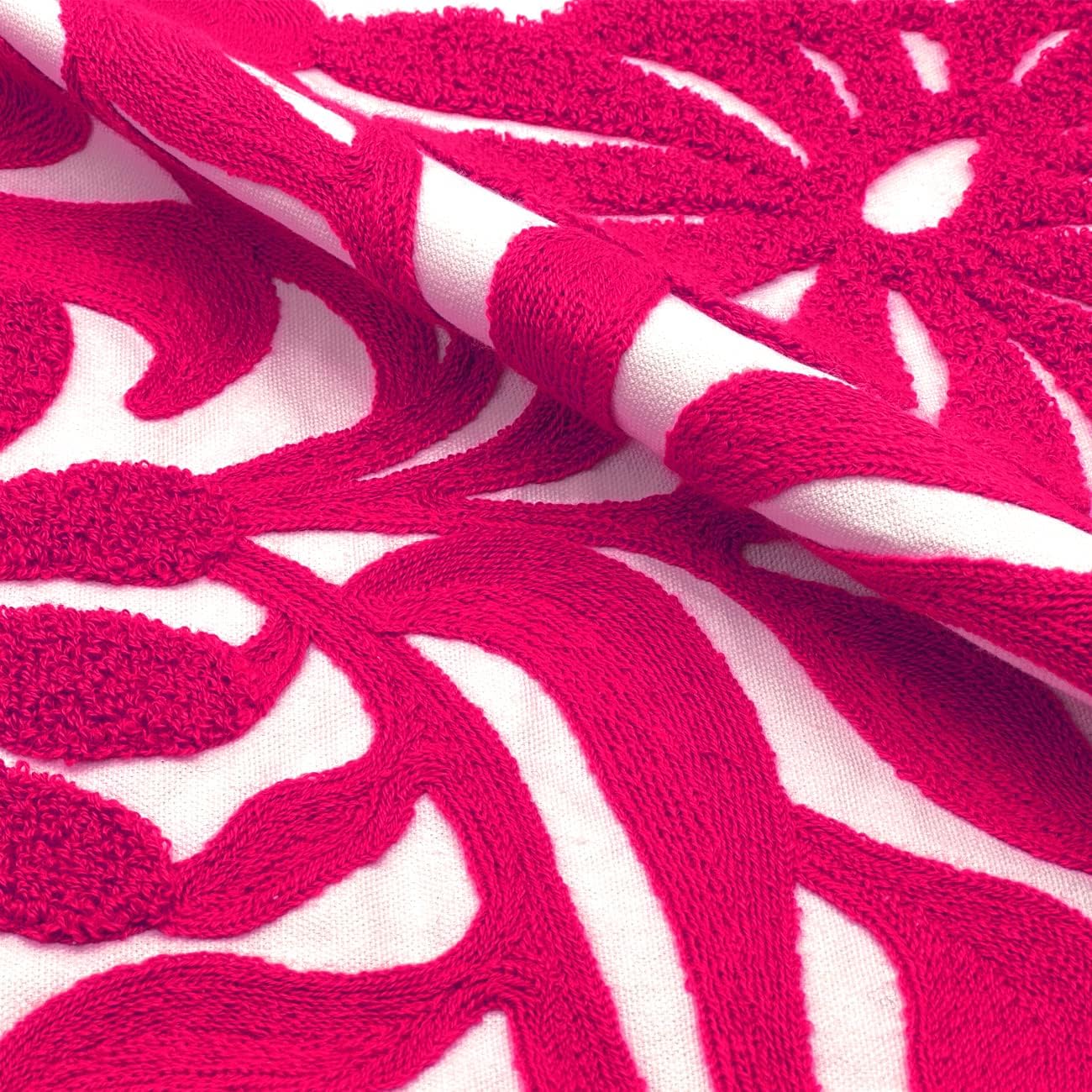 Alysheer Farmhouse Floral Leaves Embroidered Decorative Throw Pillow Cover 18x18 inches, Boho Tufted Flowers Embroidery Pattern Chic Cotton Cushion Case for Couch Bed Sofa Living Room(Bright Hot Pink)