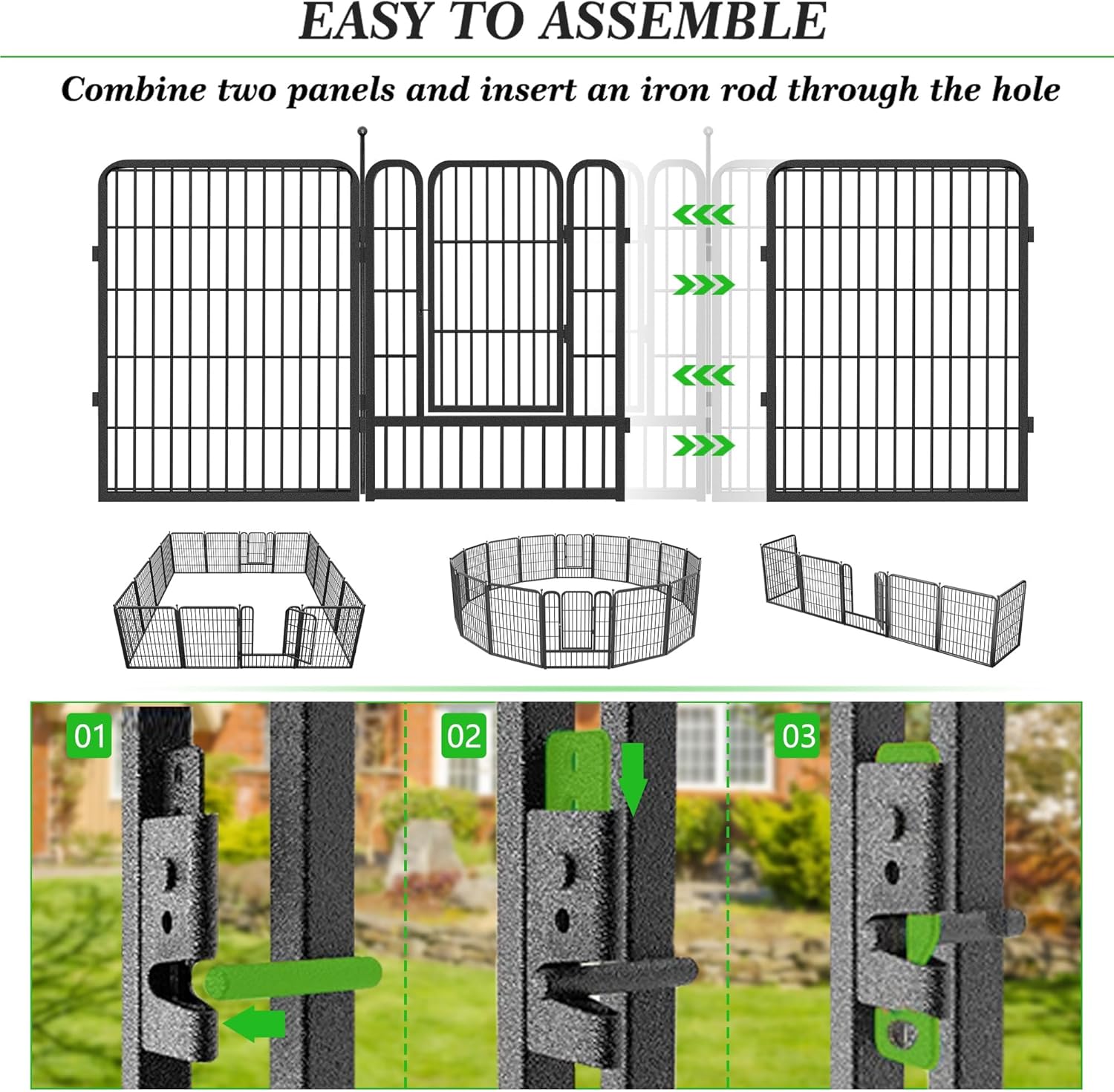 - Rust-proof & Sturdy Construction: Jhsomdr garden fence features double powder coated finish, rustproof, less maintenance, longer use. The metal fence panels are made of heavy duty iron and thick wire, no tearing, chewing, cracking and bending. The fence can work well for long time in bad weather