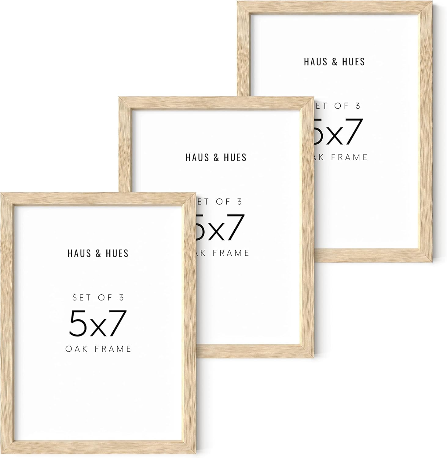 HAUS AND HUES Beige Wood Picture Frames 5x7 - Set of 3 for Gallery Wall, Collage Wall Decor, Photo Frames (Beige Oak)
