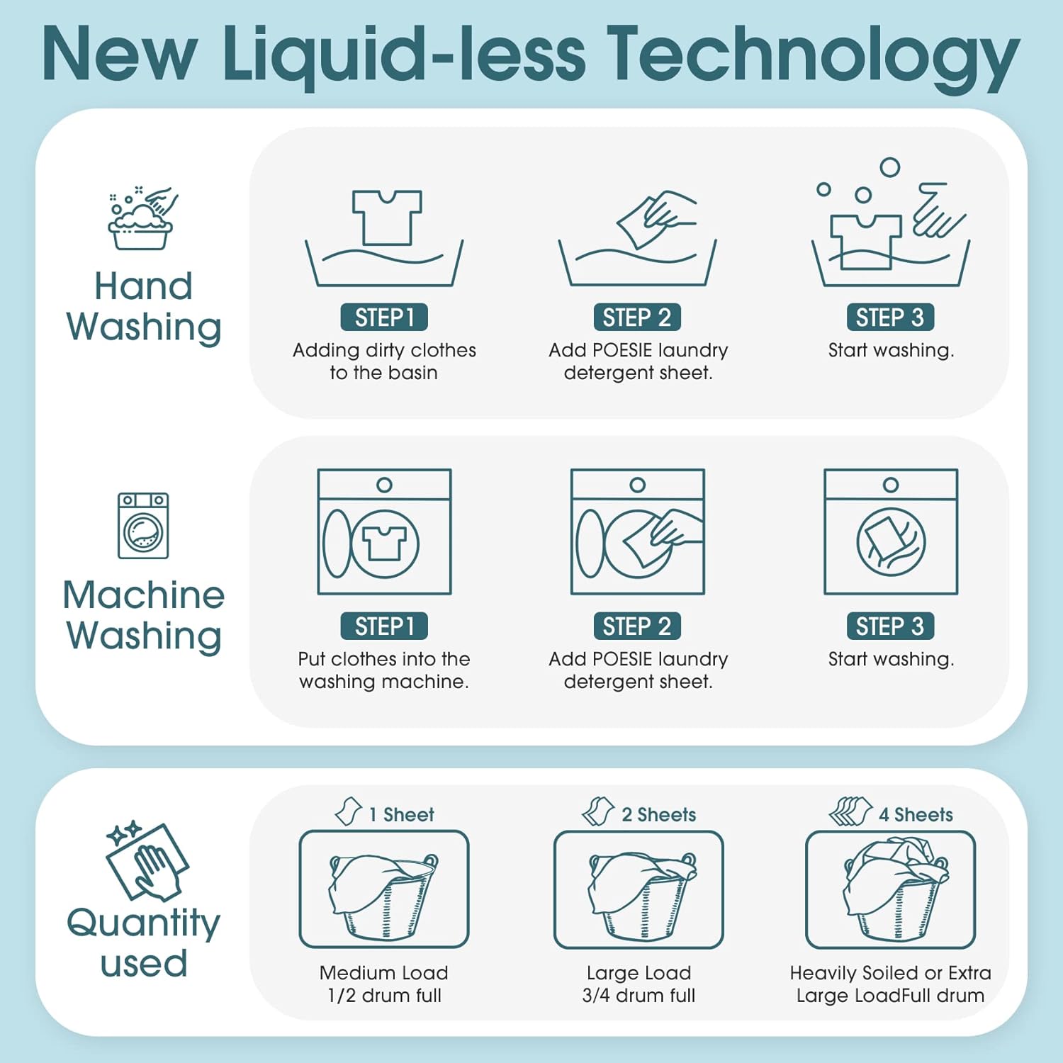 Poesie Laundry Detergent Sheets Fresh Linen Scent 160 Sheets 80 Large Loads Plastic Free Fast Dissolve Washing for All Washing Machine Traveling Dorm Life Save Space