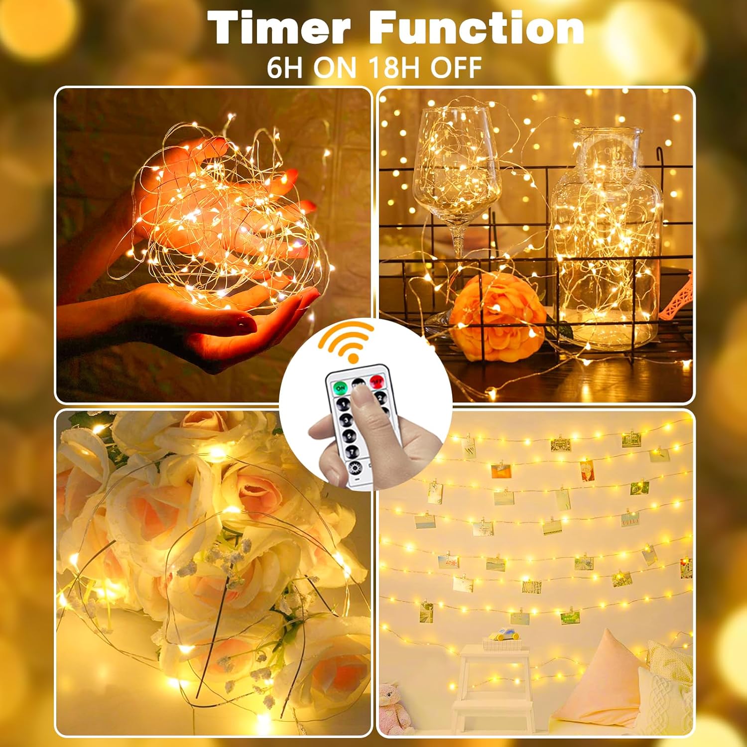 - Timer Function & Remote Controlled & Dimmable & Memory Function: You can use the remote control to get multifunction – turn on/off the lights, 8 lighting modes and timer function (6H ON 18H OFF) and adjust the brightness (10 brightness levels). The mini led lights for crafts will meet all your different moods and demands and it is very easy and convenient for use.