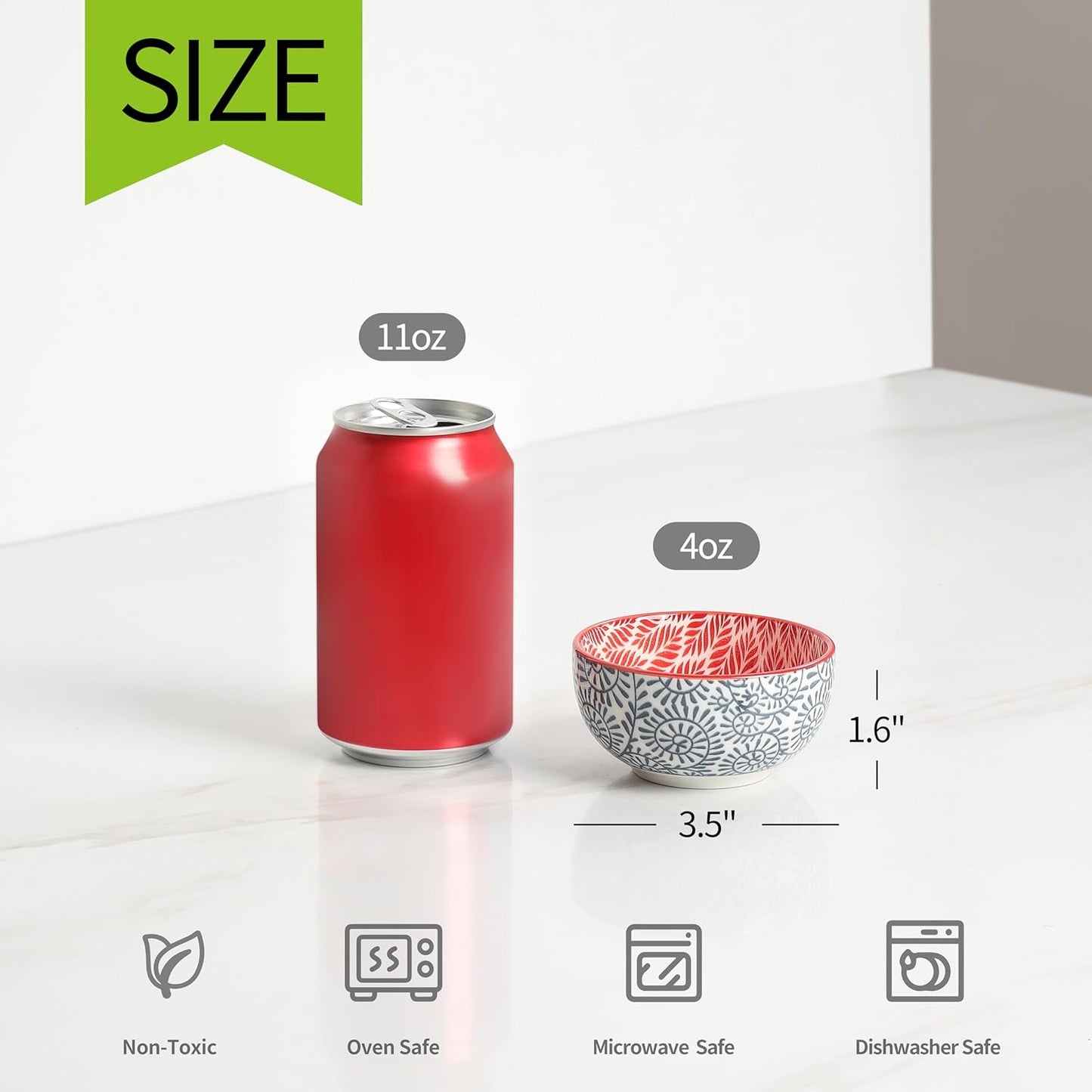 Selamica Ceramic 4 OZ Dipping Bowls Set, 3.5 Inch Mini Bowl for Dipping, Side Dishes, Microwave Dishwasher Safe, Set of 6, Assorted Colors
