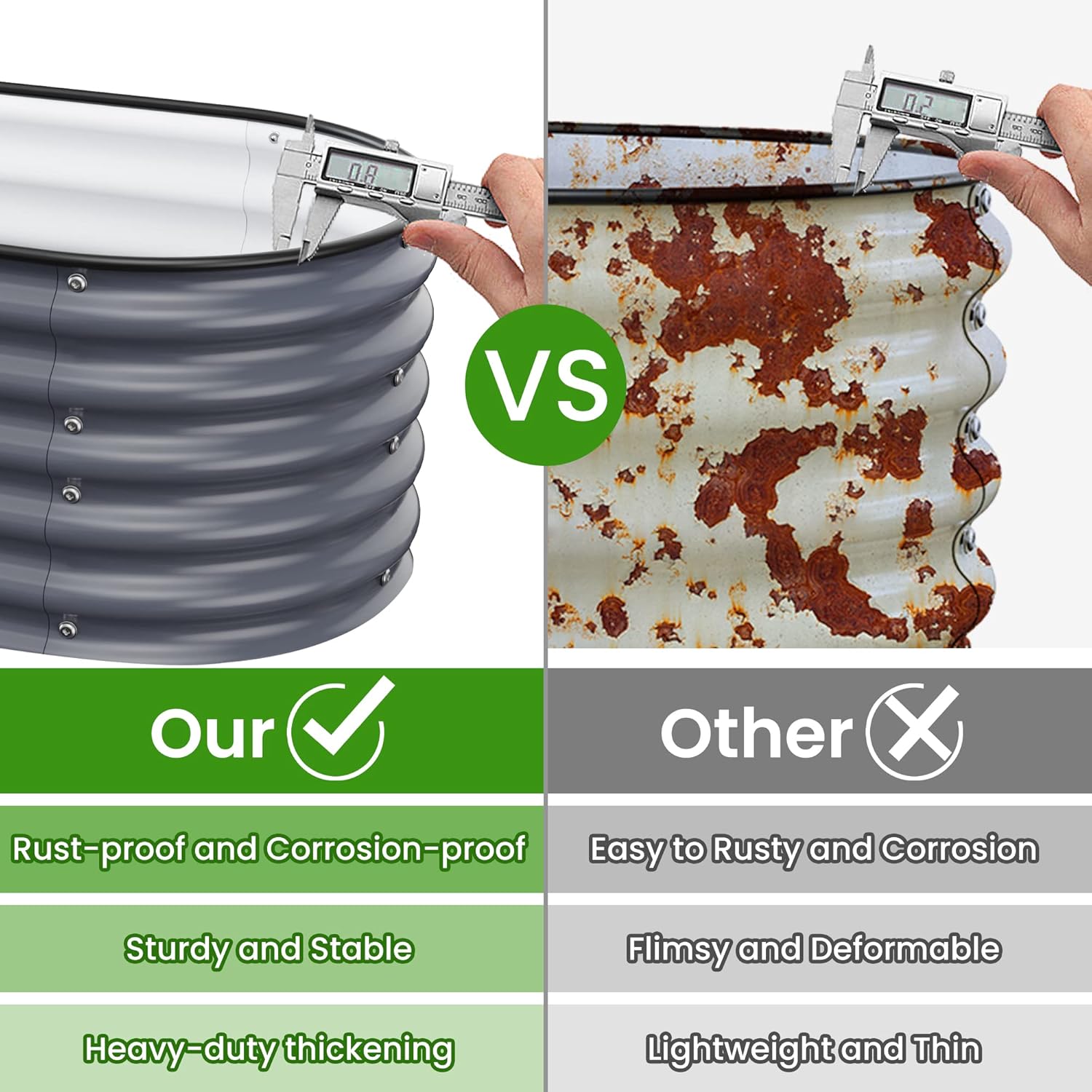 - Strong and Durable: Nossta garden beds Made of 0.6mm thickness zinc-aluminum-magnesium coated steel,its strong anti-rust performance, withstanding rust, rot, mildew, UV rays and corrosion. ensuring up to decades of service life