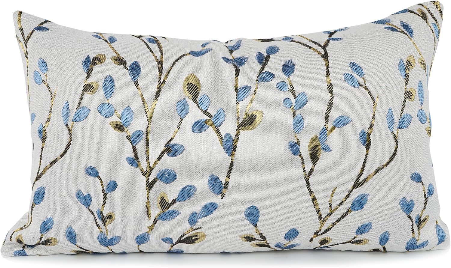YOUR SMILE Classical Embroidery Jacquard Blue Square Decorative Throw Pillow Case Cushion Cover,12x20 inch