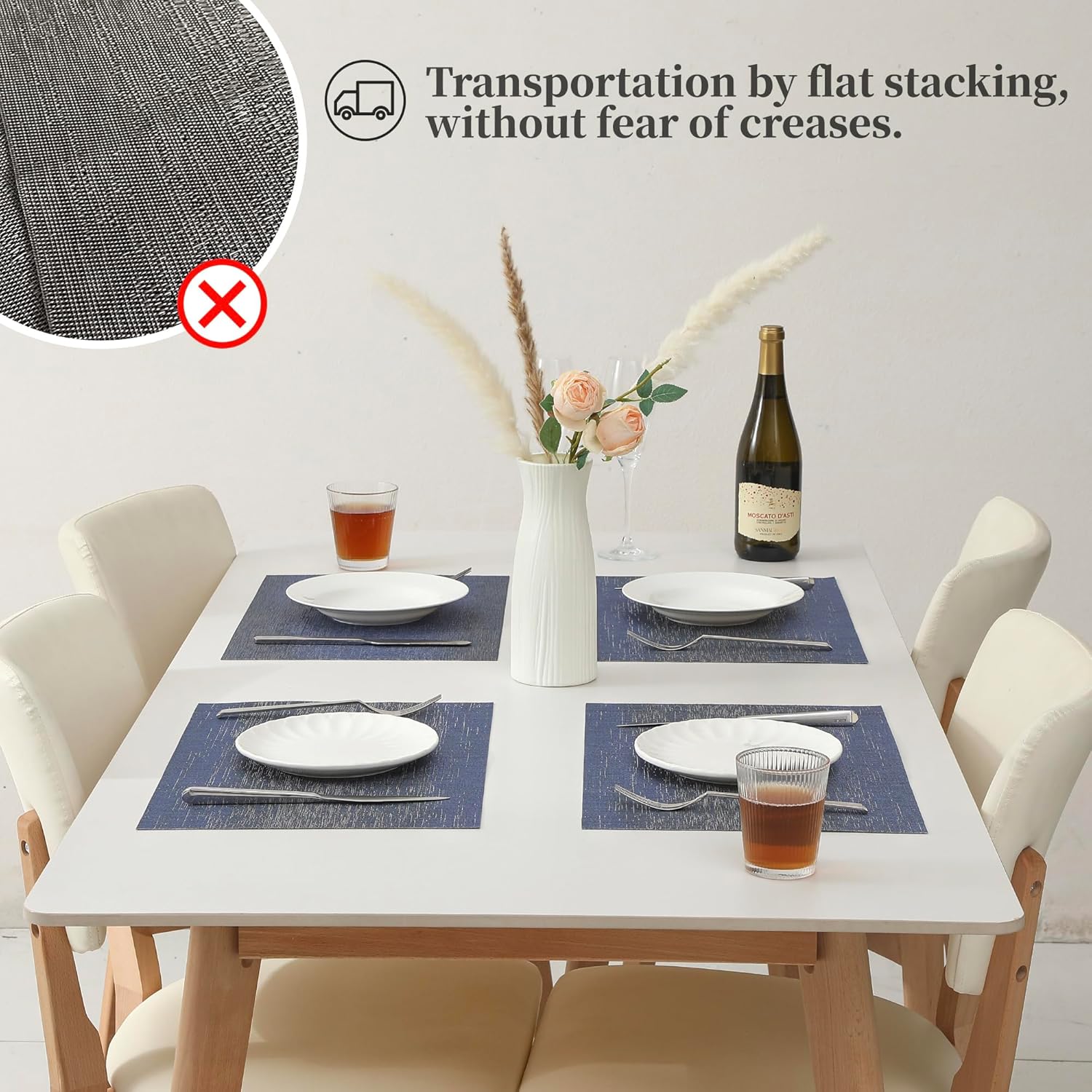 Leetaltree Denim Blue Placemats Set of 8 - Heat Resistant Non-Slip Place mats for Dining Table, Washable Durable PVC Vinyl Woven Table Mats(Denim Blue, 8)