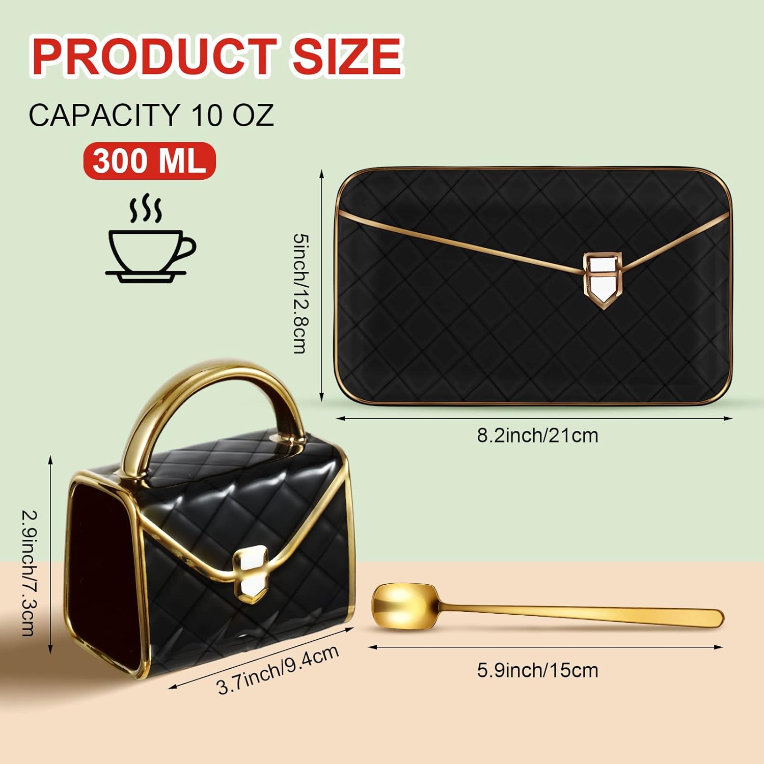 - Delicate Coffee Mug Set: the package comes with 1 piece of handbag shaped black mug and it is equipped with a spoon and saucer, which is thoughtful set for your daily use; They are well packaged in a gift box, reading for your gift giving needs