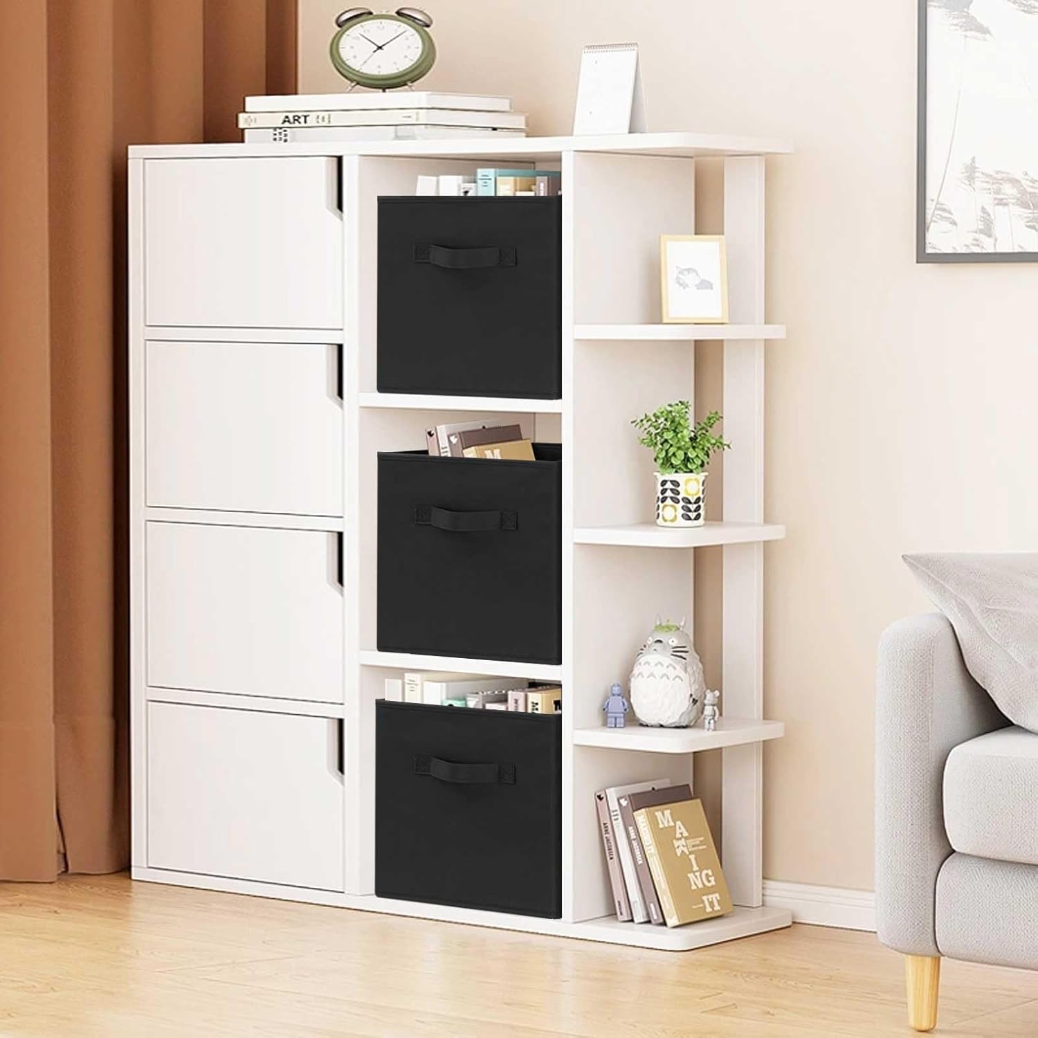 - 【Double Handles】These fabric storage cubes have two sewn-in handles on the sides for easy room-to-room carrying or removing on a shelf. With the reinfored handles, they could work well as drawers, open-top bins, or storage baskets for shelves