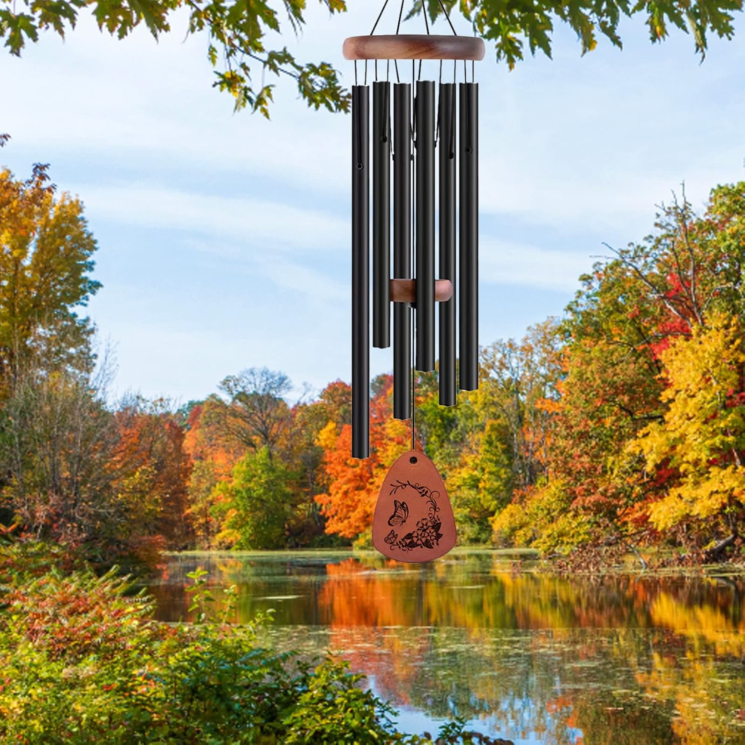 Wind Chimes for Outside, 32" Butterfly Windchime for Outdoor, Butterfly Gifts for Women Mom Sister, Garden Patio Gift Ideas for Friend Co-Worker (Black)