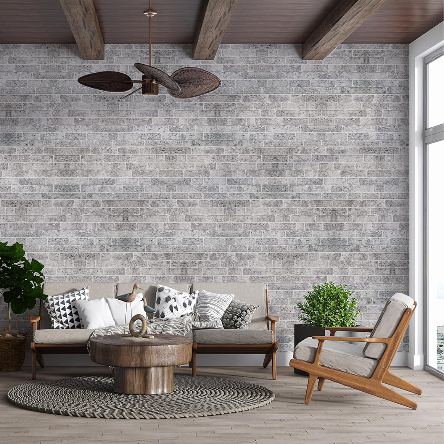 IZODEKOR 3D Wall Panels Brick Effect - Cladding, Stone Look, Styrofoam Facing for Living Room, Kitchen, Bathroom, Balcony, Bedroom, Back of Counter | White Grey (10 x Panels) - Covers 53 sq ft
