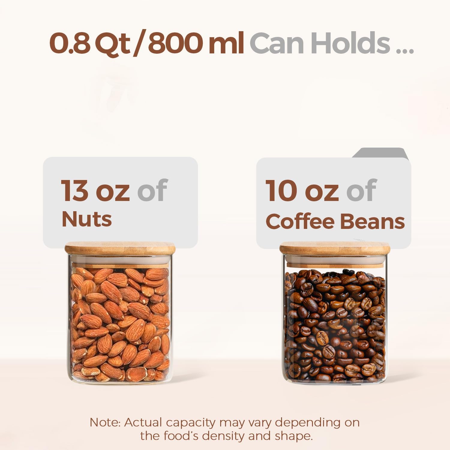 ComSaf 0.8 Qt Glass Food Storage Jars Set of 6, Clear Storage Containers with Airtight Lids, Pantry Organization Jar, Spice Jar, Blooming Tea, Oat, Coffee and Sugar Container, Canister Set for Kitchen