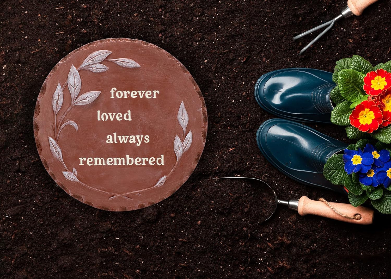 - CLASSIC NATURE INSPIRED DESIGN – Features a heartfelt saying that reads, "Forever Loved, Always Remembered". Brighten up your indoor and outdoor spaces with this beautiful leaf pattern stepping stone. Dimensional laurel wreath design adds interest to your décor.