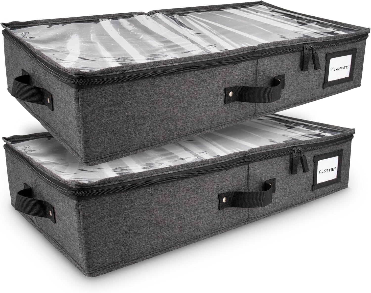 - ๐๐๐ ๐๐จ๐ฉ ๐๐จ๐ฏ๐๐ซ ๐ญ๐จ ๐๐๐๐ง๐ญ๐ข๐๐ฒ ๐๐จ๐ง๐ญ๐๐ง๐ญ๐ฌ ๐๐ฆ๐ฆ๐๐๐ข๐๐ญ๐๐ฅ๐ฒ: Homelux Theory's thin under bed storage containers not only comes with a durable clear transparent PVC lid, but it also has 2 large label pockets, allowing you to easily identify the contents such as bedroom accessories & clothes of each underbed storage containers without having to open them. This under bed storage clothes not only works best as a shoe box drawer storage, but is also for under bed under crib storage bin and underbed clothes box.