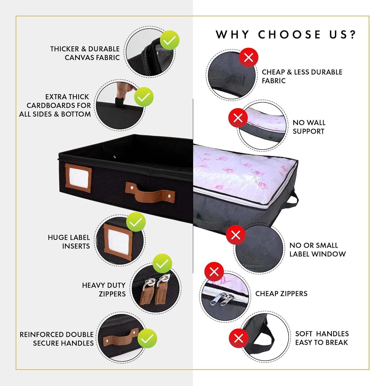 - ๐๐ฑ๐ญ๐ซ๐ ๐๐ก๐ข๐๐ค ๐๐ญ๐ฎ๐ซ๐๐ฒ ๐๐๐ซ๐๐๐จ๐๐ซ๐๐ฌ: Unlike most under bed storage box, Homelux Theory's under the bed storage containers come with extra thick cardboard on each side and bottom part to help hold their shapes and withstand frequent use & heavy loads. While other under box for clothes and shoe organizer under bed storage in the market usually has flimsy sides made of thin, lightweight materials, our timeless storage boxes for under bed are crafted for long-term durability and reliable performance.