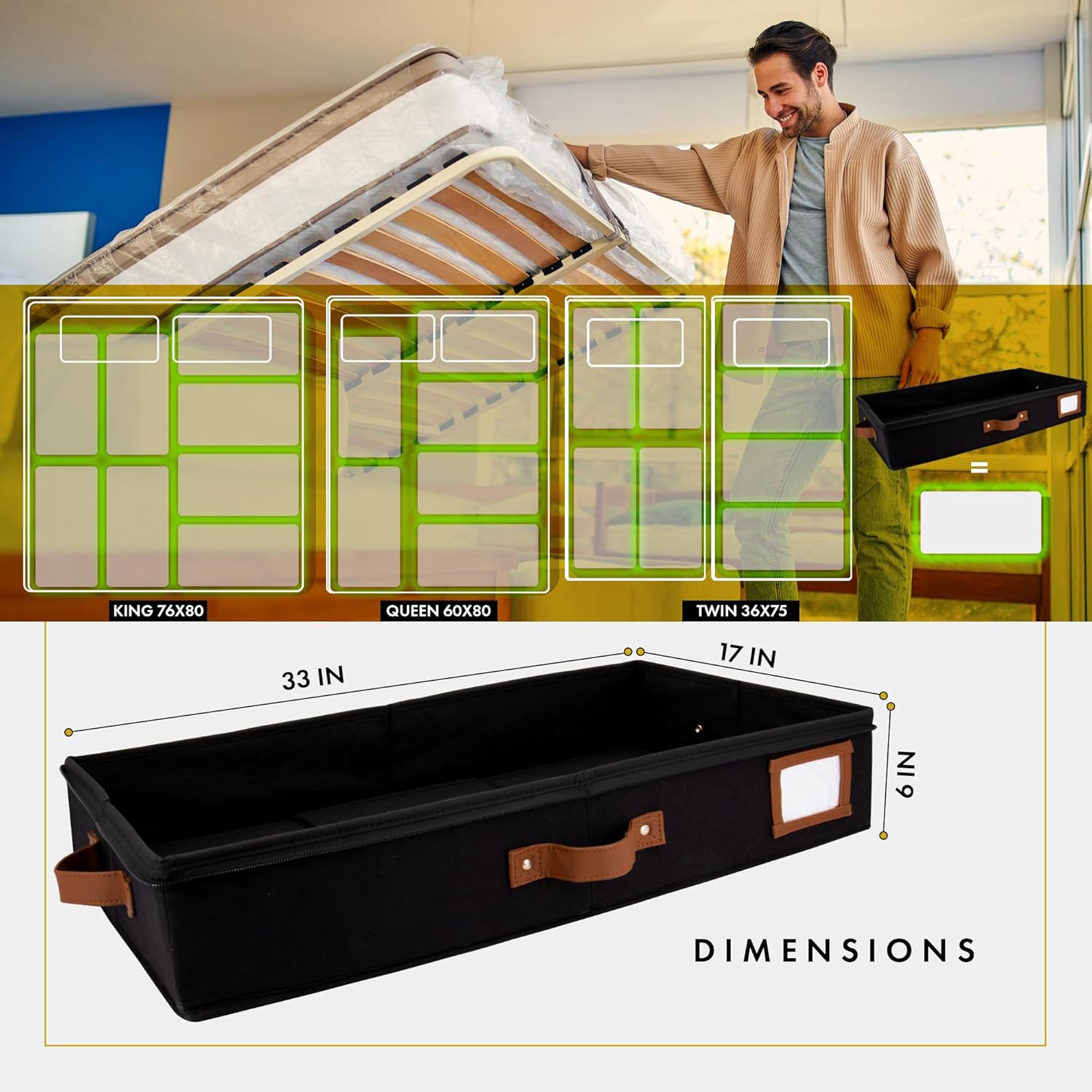- ๐๐ฎ๐ฉ๐๐ซ๐ข๐จ๐ซ ๐๐๐ง๐ฏ๐๐ฌ & ๐๐๐ญ๐๐ซ๐ข๐๐ฅ: Made from premium quality canvas fabric, our 33x17x6" Under Bed Storage Containers With Lids are durable, sturdy, & carefully designed to hold large quantities of clothes, blankets, shoes, & various bed accessories. These under bed storage dorm drawers are designed to fit perfectly under your bed for efficient bed room organization and storage, making it an under bed organizer that will easily blend into your home's aesthetic style.