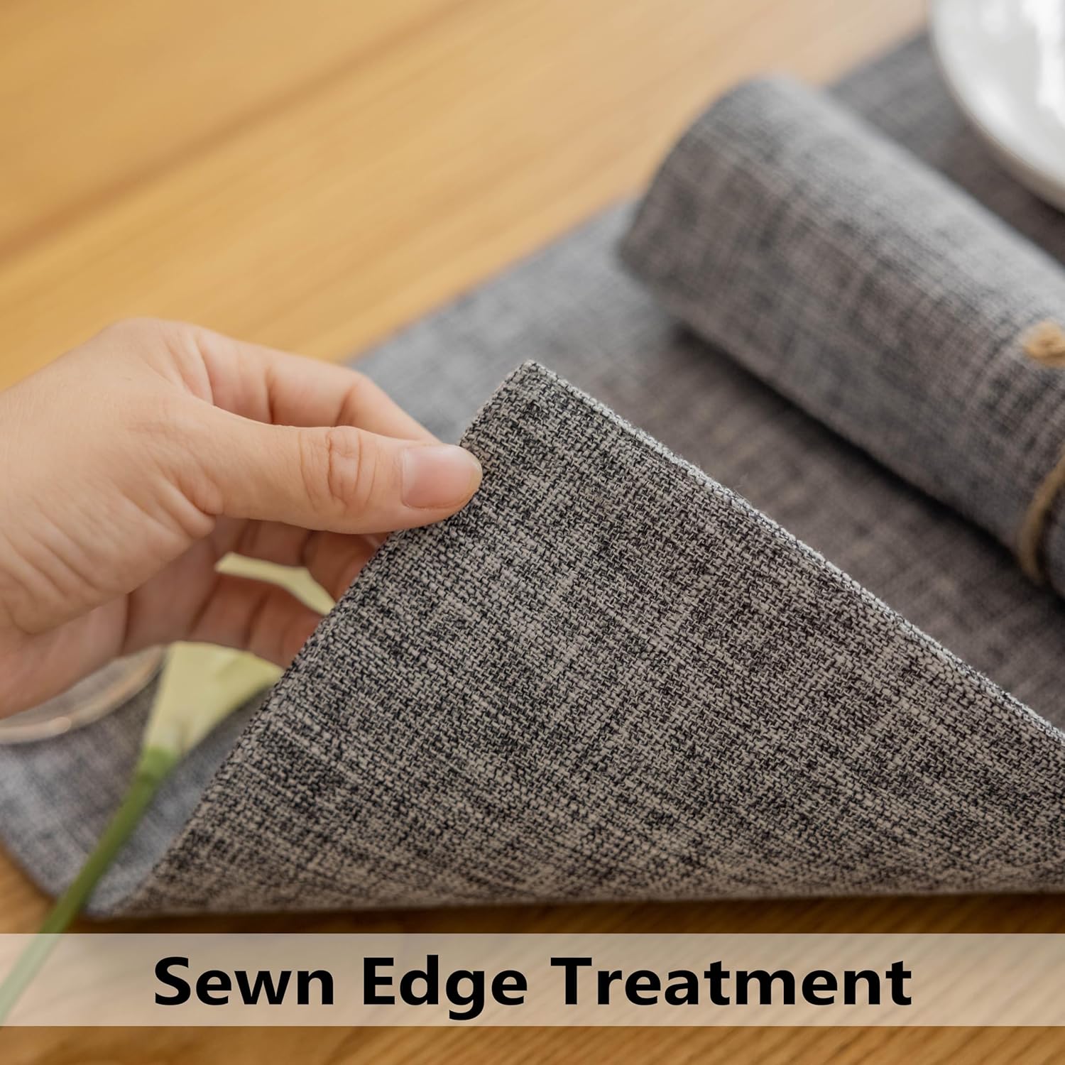 Demetex Cloth Placemats Set of 6 Table Mats Gray Linen Place Mats for Buffet Kitchen and Dining Room, Ash Grey
