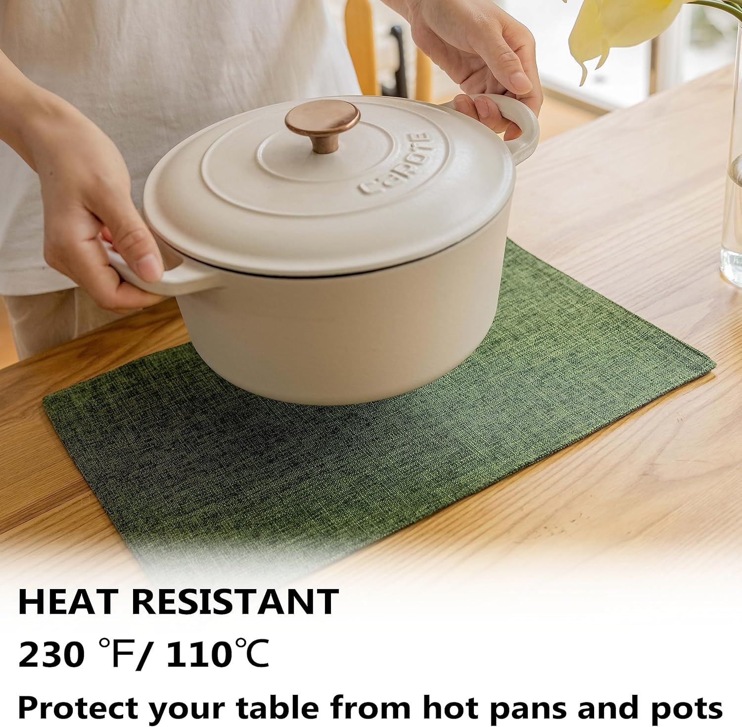 Demetex Cloth Placemats Green Set of 4 Vintage Textured Linen Place Mats Heat Resistant Plate Placemat for Kitchen Dinning Table, Green