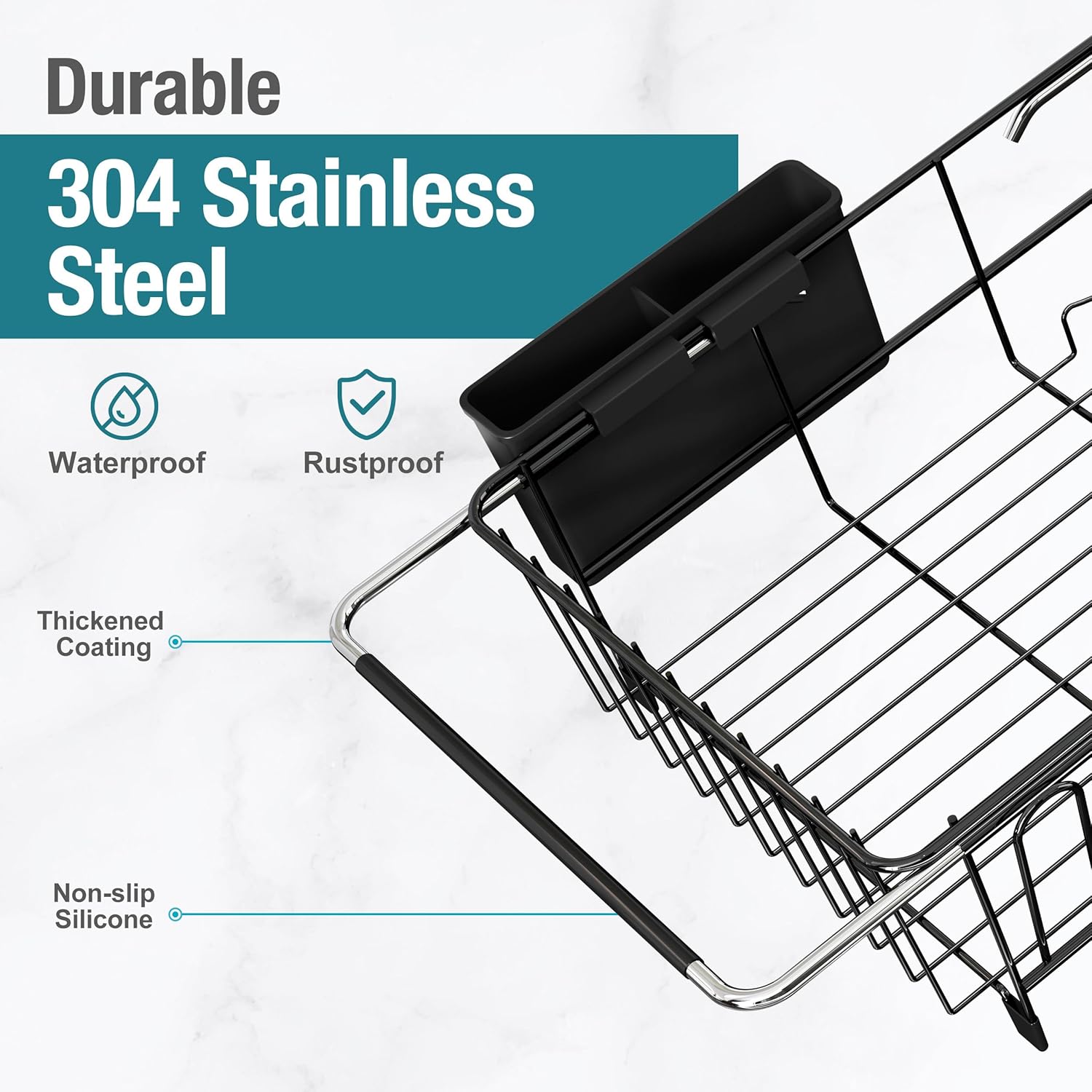 - Rustproof & Long Lasting: To prevent rust on the dish racks, this kitchen drying rack is made of food-grade Stainless Steel and constructed of thickened tube pipes, Stable and High Load Bearing