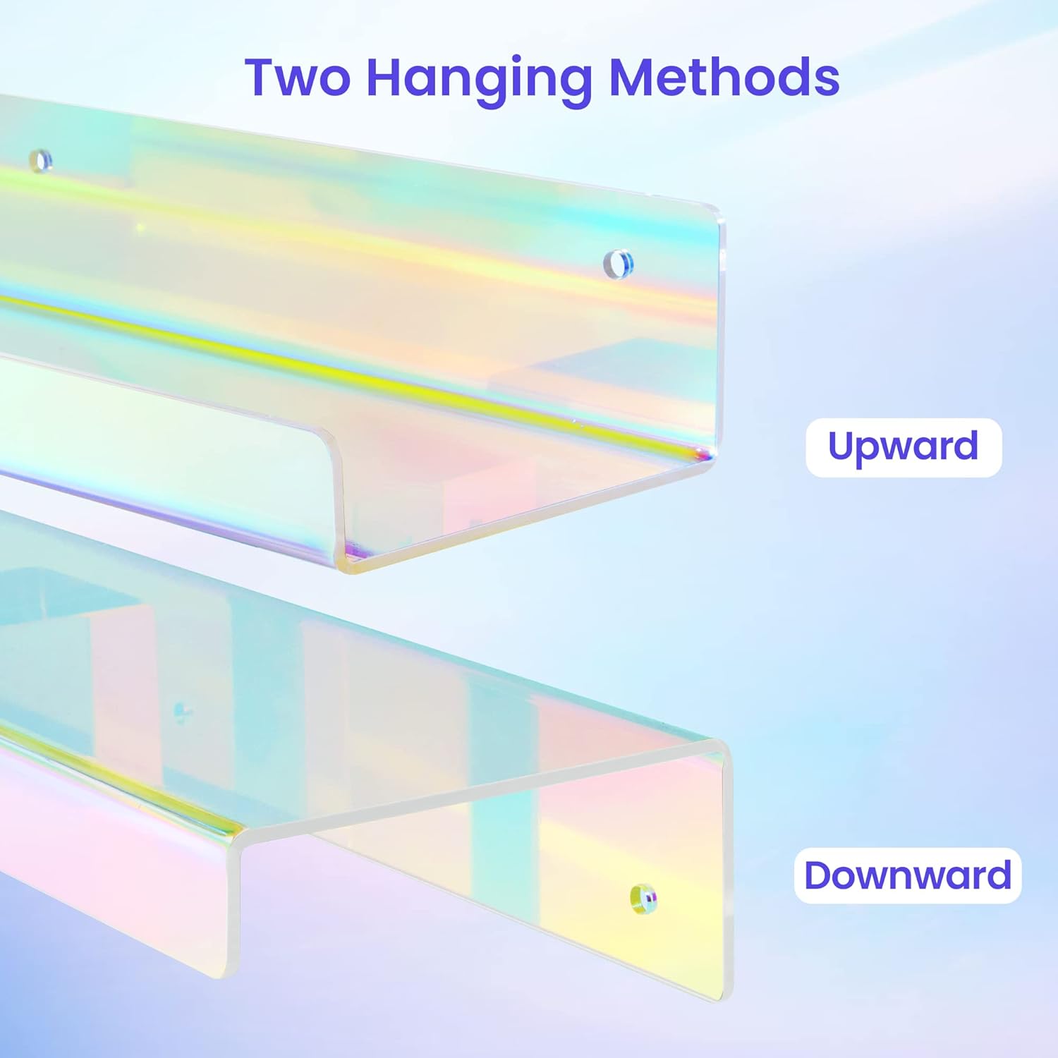 upsimples Acrylic Shelves for Wall Decor, 15" Display Shelf for Perfume, Skincare, Nail Polish, Wall Organizer for Bathroom, Bedroom, Living Room, Playroom, Kids Bookshelf, Iridescent, 2 Pack