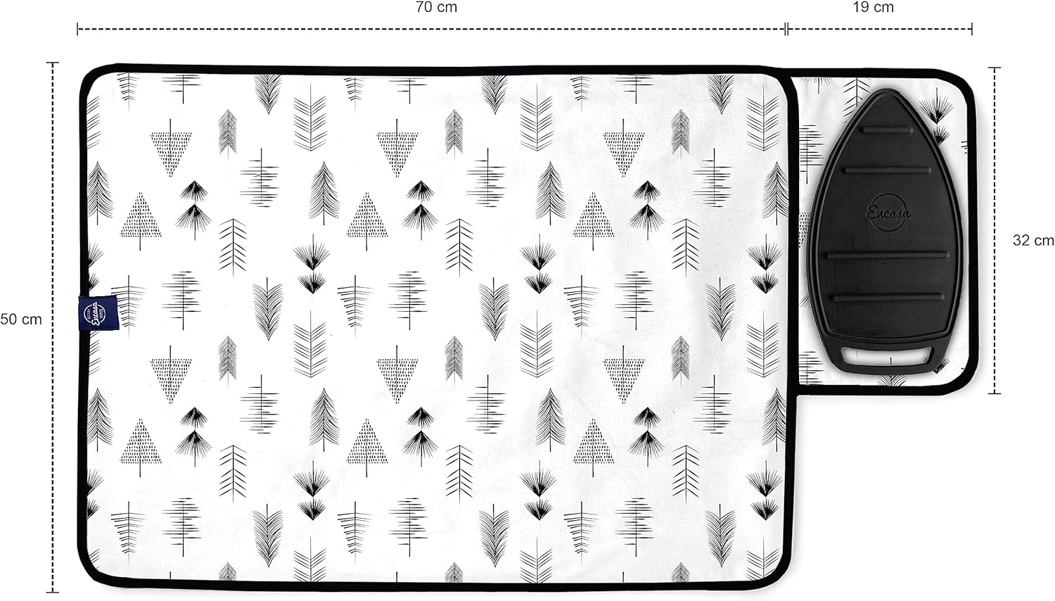 Encasa Homes Ironing Mat/Pad (Small 28"x20") with 3mm Padding & Silicone Iron Rest for Steam Pressing on Tabletop or Bed - Heat Resistant, Portable, Quilting & Travel Blanket - Black Arrow