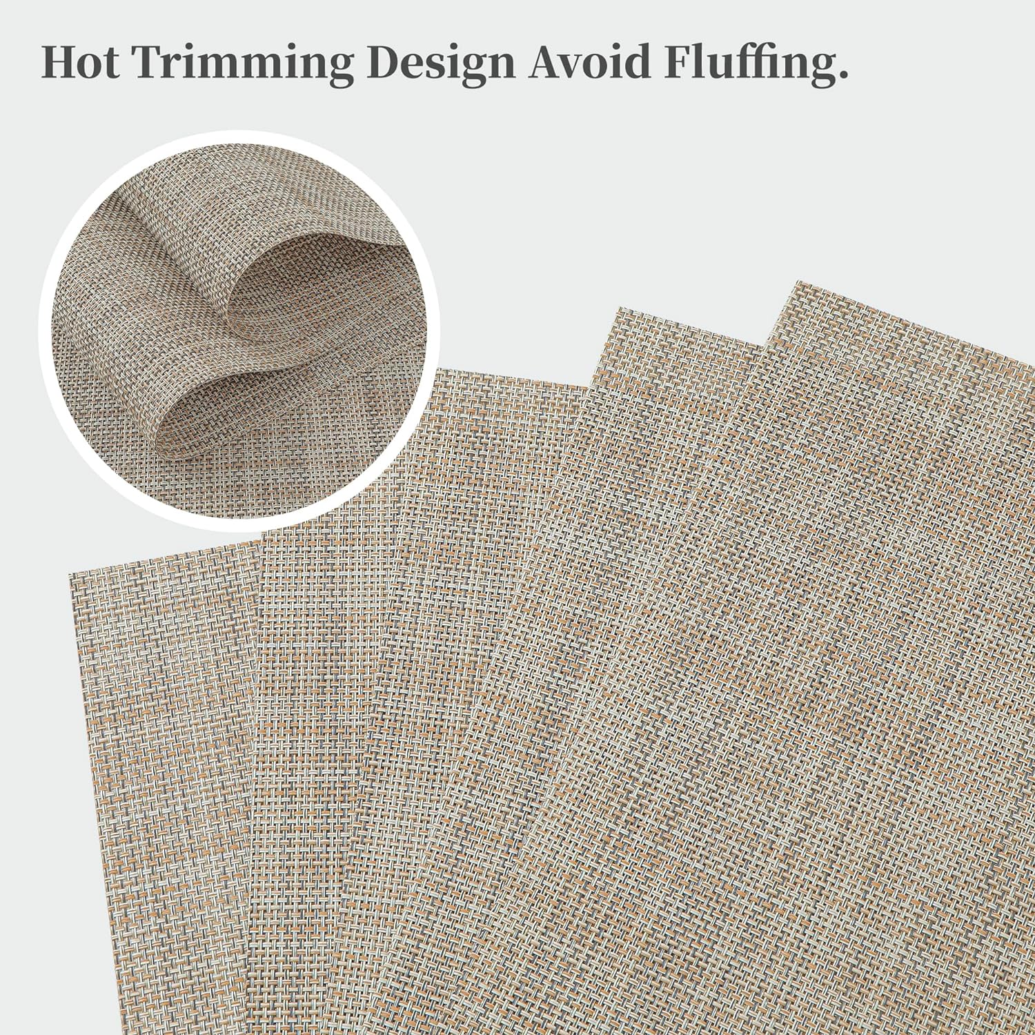 - Elegant and Practical Design: With a luxurious vinyl woven texture, precision cutting, and heat-trimmed edges, our double-sided placemats offer a sophisticated and practical solution. They provide a non-slip surface, resist fading, and are easy to clean, elevating your dining experience.