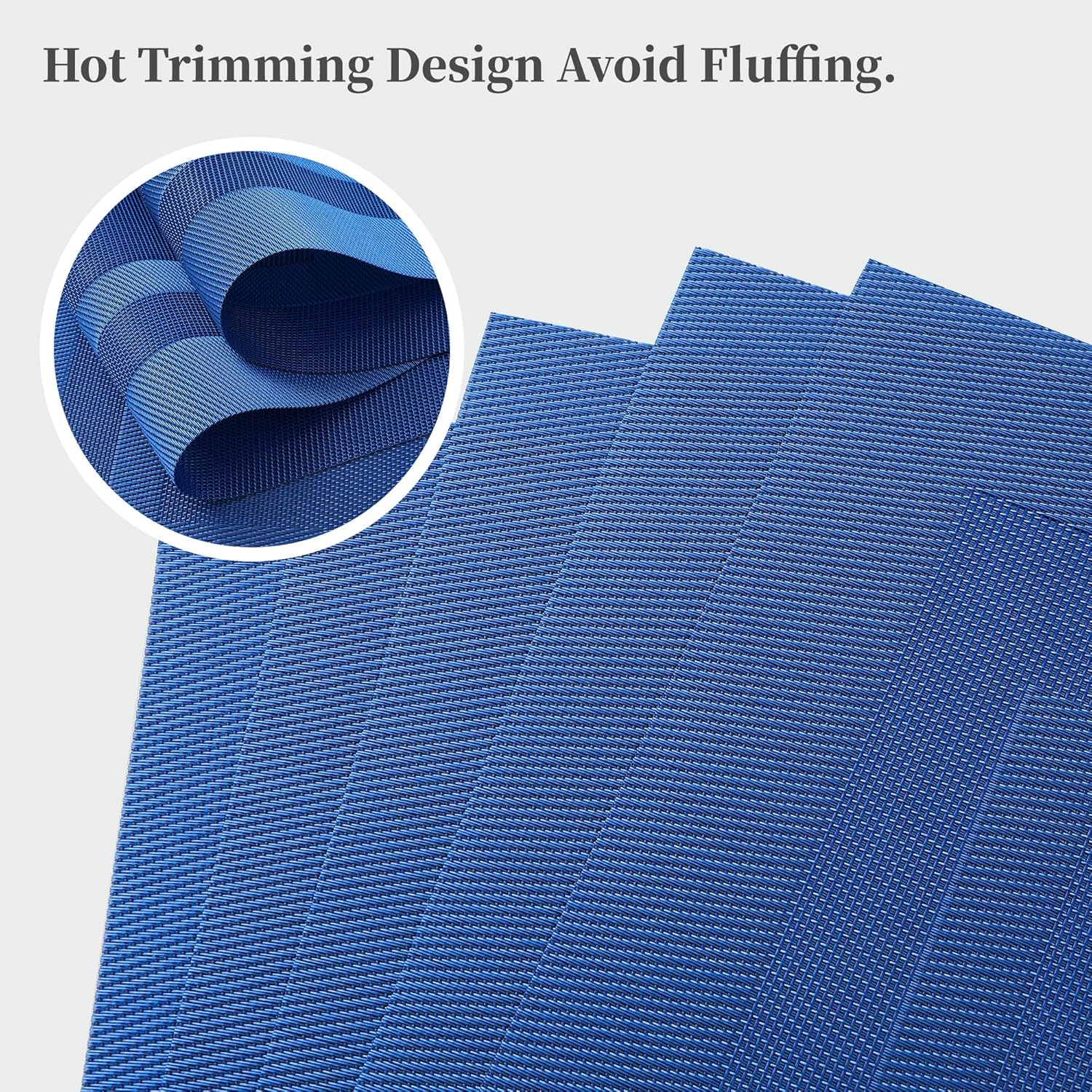 Leetaltree Blue Frame Placemats Set of 8 - Heat Resistant Non-Slip Place mats for Dining Table, Washable Durable PVC Vinyl Woven Table Mats(Blue Frame, 8)