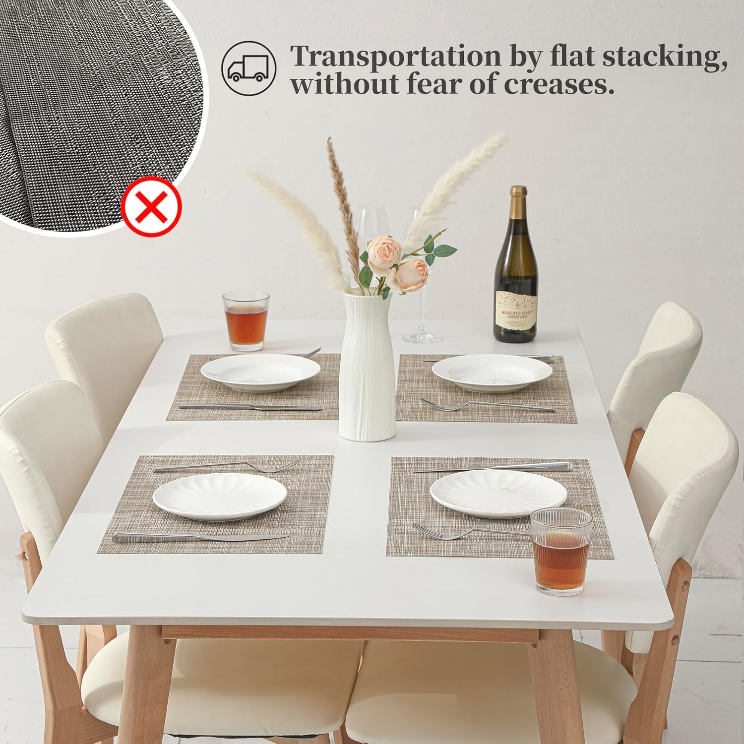 - Protects Your Table: Keep your table safe from scratches and spills with our heat-resistant placemats. They can withstand temperatures up to 176℉(80℃) and help keep food warm. Add style to your dining setting while ensuring table protection.
