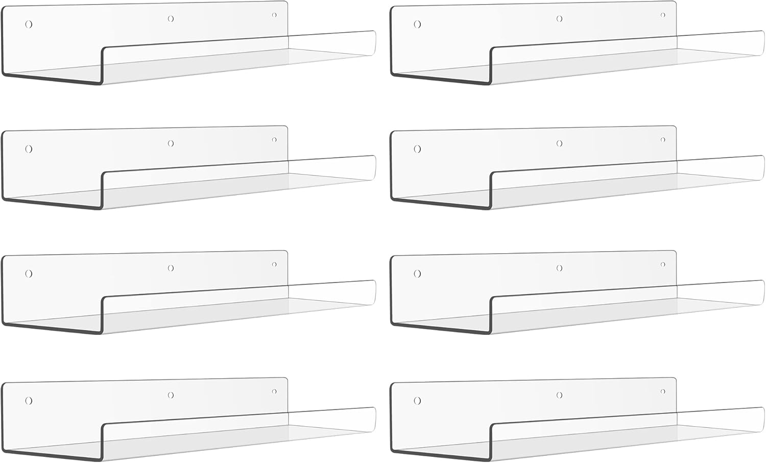 upsimples 8 Pack Acrylic Shelves Wall Organizer and Storage, 15" Display Shelf for Figure, Toy Cars, Perfume, Kids Bookshelf for Bedroom, Nursery, Craft Room, Clear