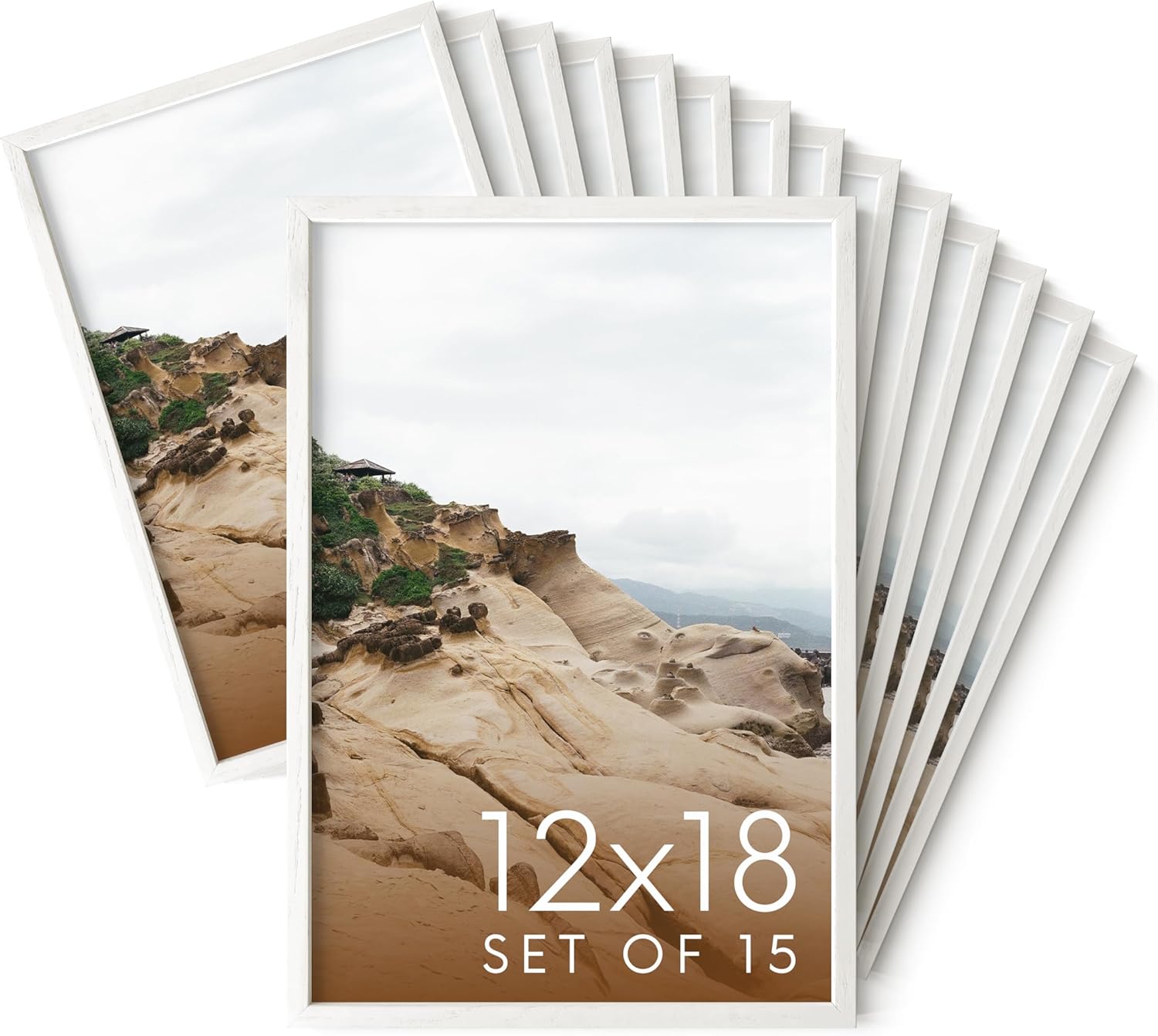 Haus and Hues 12x18 White Oak Wood Picture Frames Set of 15 - Premium Bulk Picture Frames 12x18 Bundle - Elegant Gallery Wall Frame Set for Posters, Art Display - Ideal for Wall Decor in Home & Office