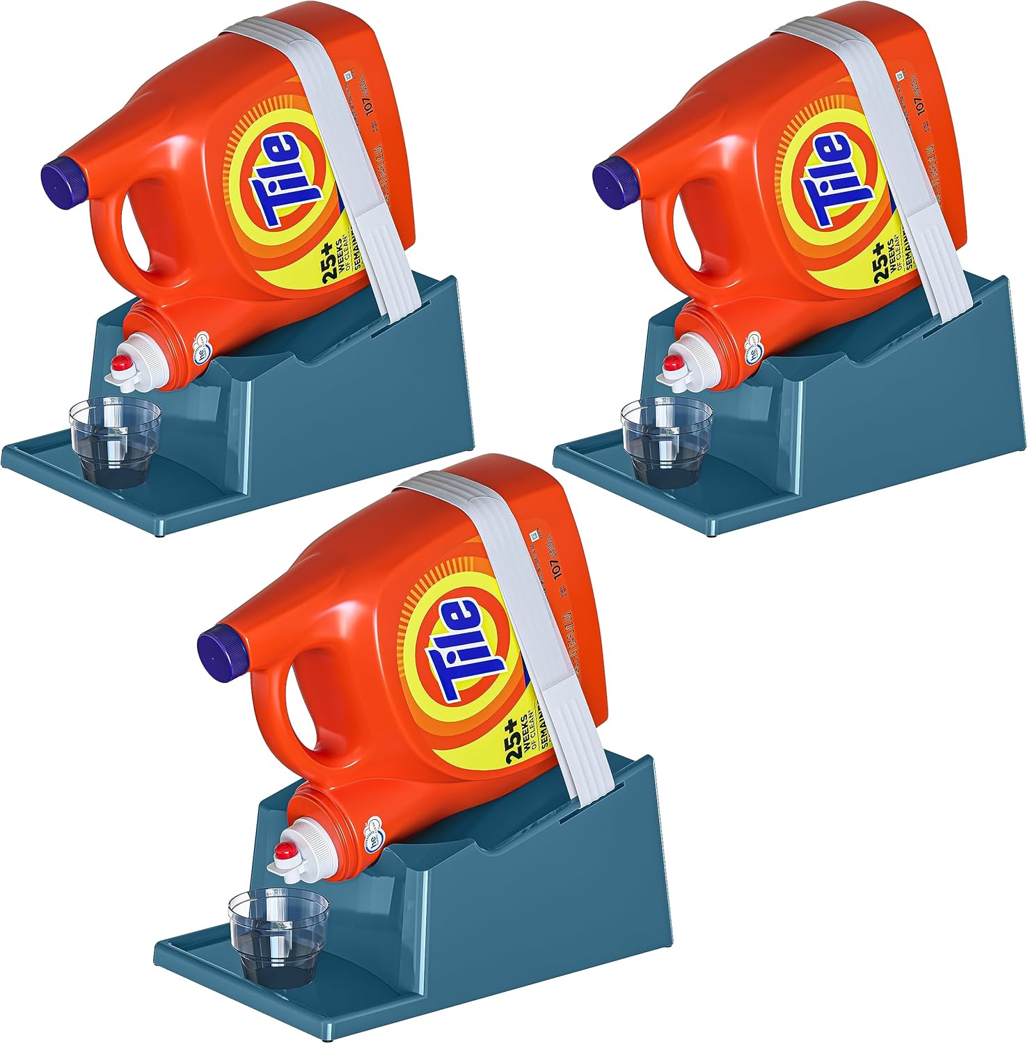 TidyFriend Laundry Detergent Holder Stand with Drip Tray, 3 Pack Laundry Soap Holder with Non-Slip Rubber Feet for Washing Space Organization, Angled Downward Slope for Easy Pouring (Slate Grey)