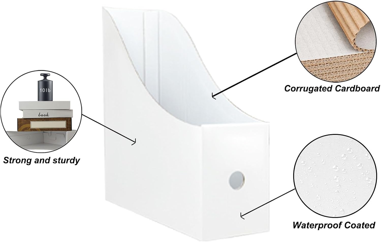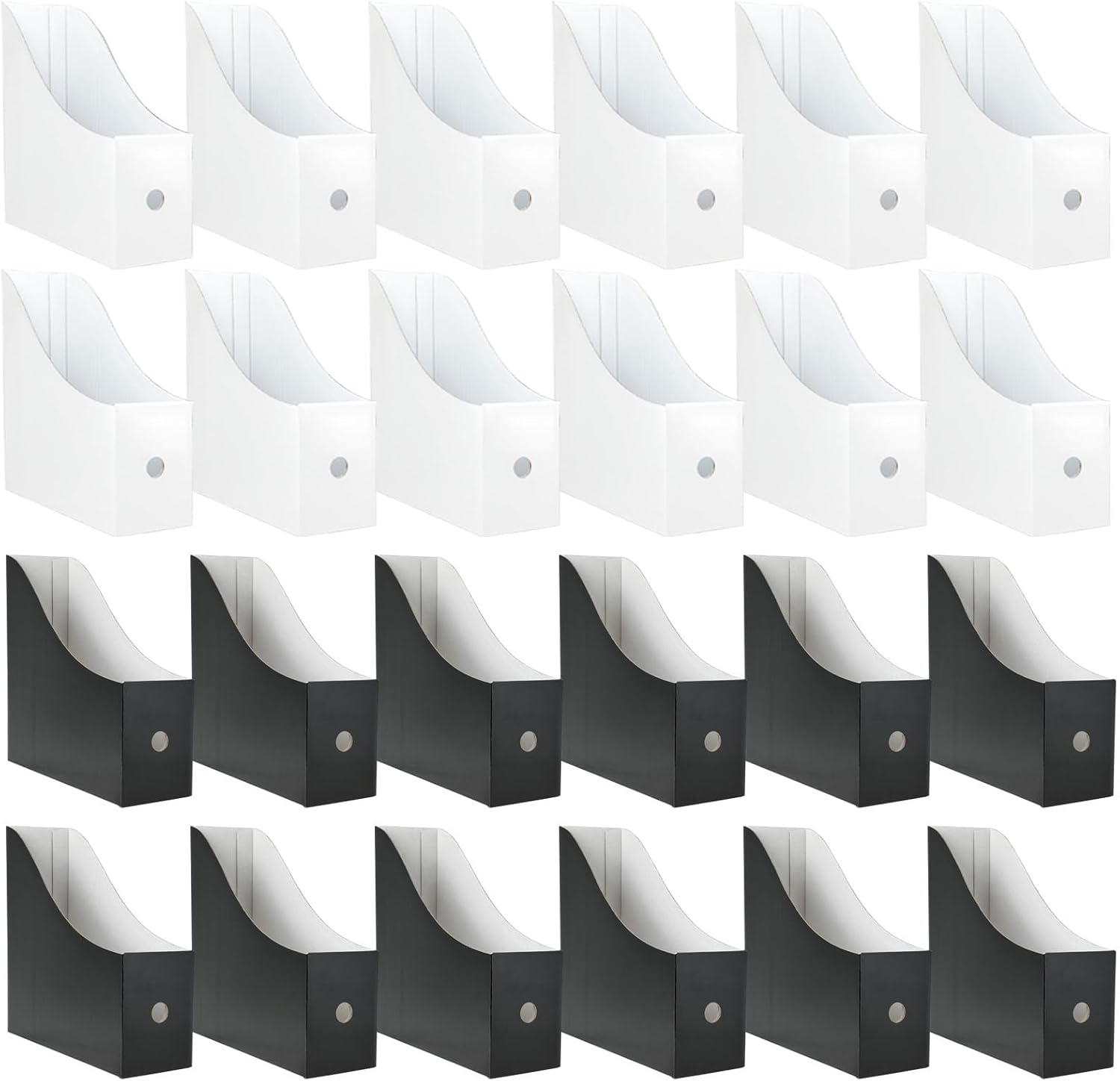24 Pack Cardboard Magazine Holder, Magazine File Holder for Home, Office, Desk, 10.6'' H×10.2'' L ×3.5''W Magazine Storage Box (12 Pack White and 12 Pack Black)