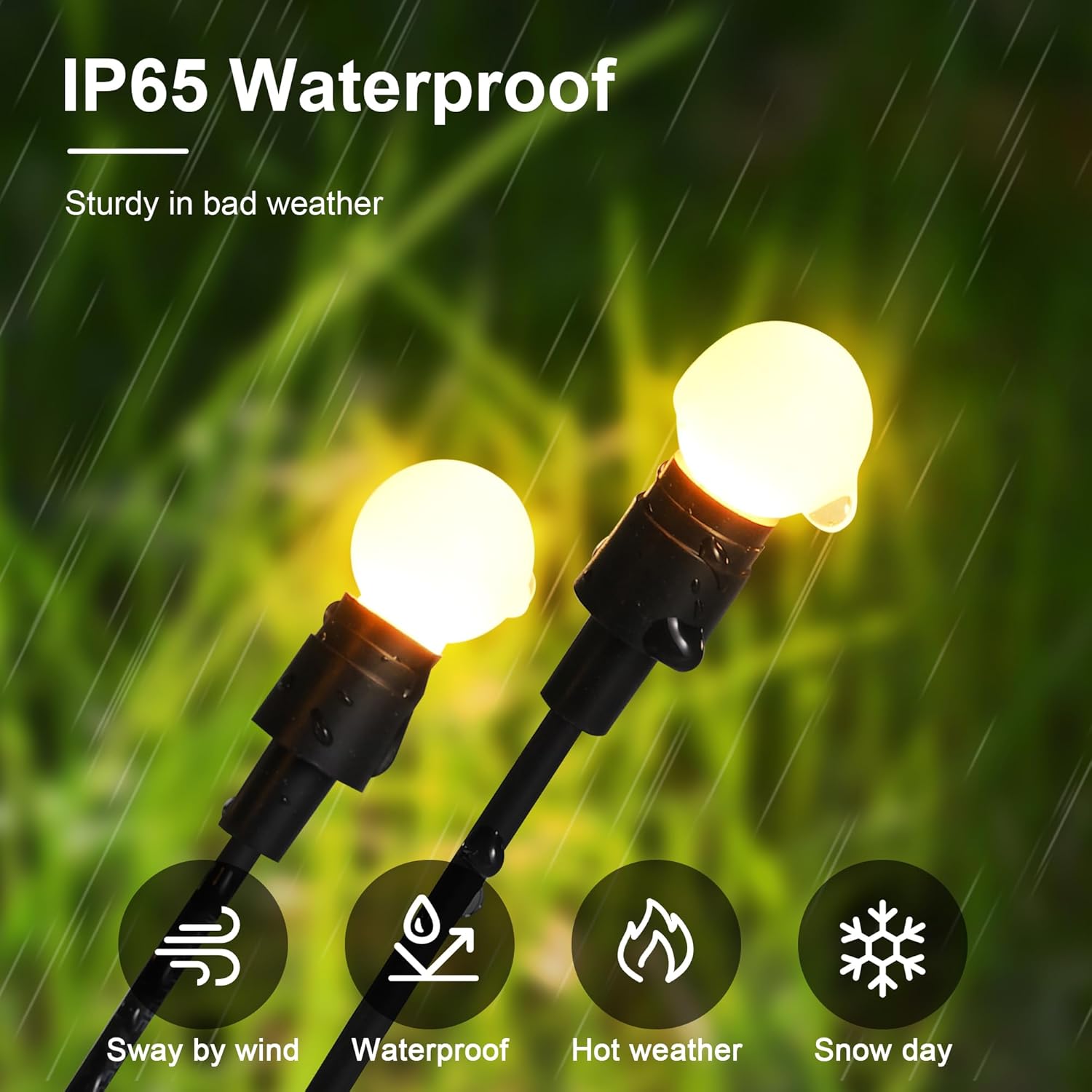 - ● 【IP65 Waterproof & Durable】The IP65 solar lights outdoor waterproof with a large 600mAh battery capacity, which can withstand any extreme weather condition,our solar fairy lights can illuminate your garden all night long, even on rainy days, you can enjoy your lights all year around.