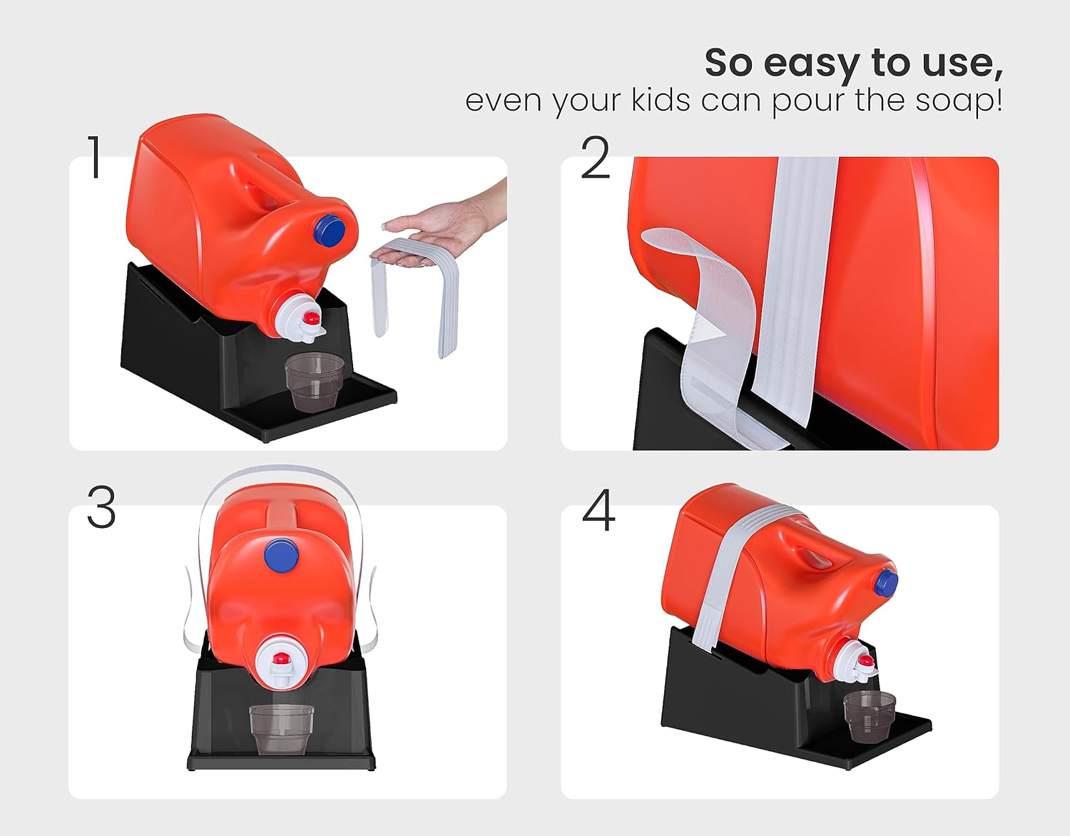 - [Effortless Soap Dispensing:] The angled design of our laundry soap organizer allows for easy soap pouring without the need to tilt or lift heavy detergent bottles, saving you time and effort during laundry.