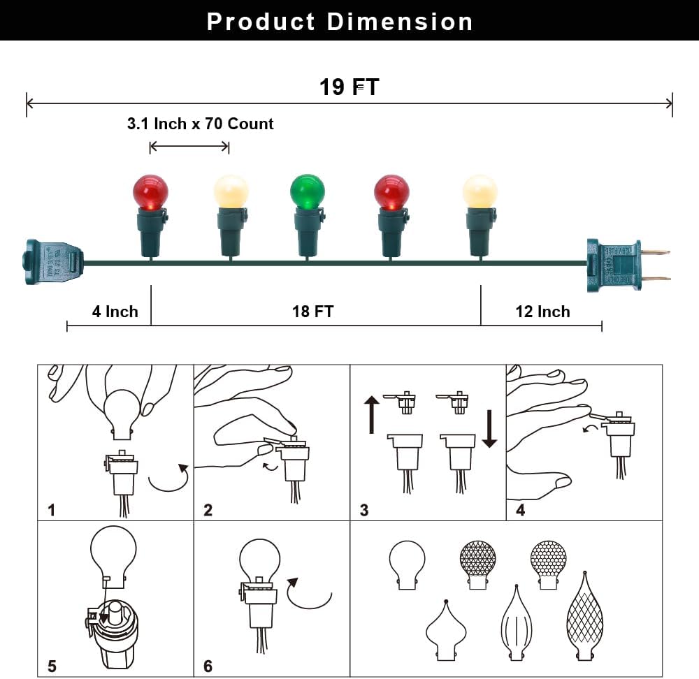 - Red Green White G15 Christmas lights : Totally 19Feet & 70 Mini Globe Round Bulb Lights . LED bulbs always cool to the touch when lit. If one bulb burns out the rest will stay lit. LED lights use up to 80% less power than incandescent bulbs.