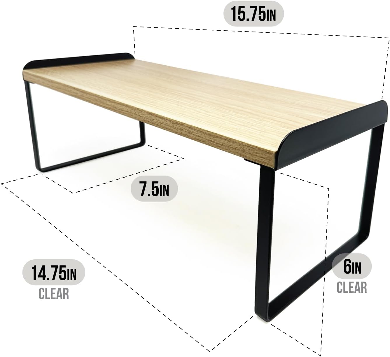 Mitus Shelf Organizer and Storage, Tiered Wood Cabinet Rack for The Kitchen Counter, Bathroom Counter, Pantry Cupboard, Office Desk Bookshelf, 16" Wide Natural and Black