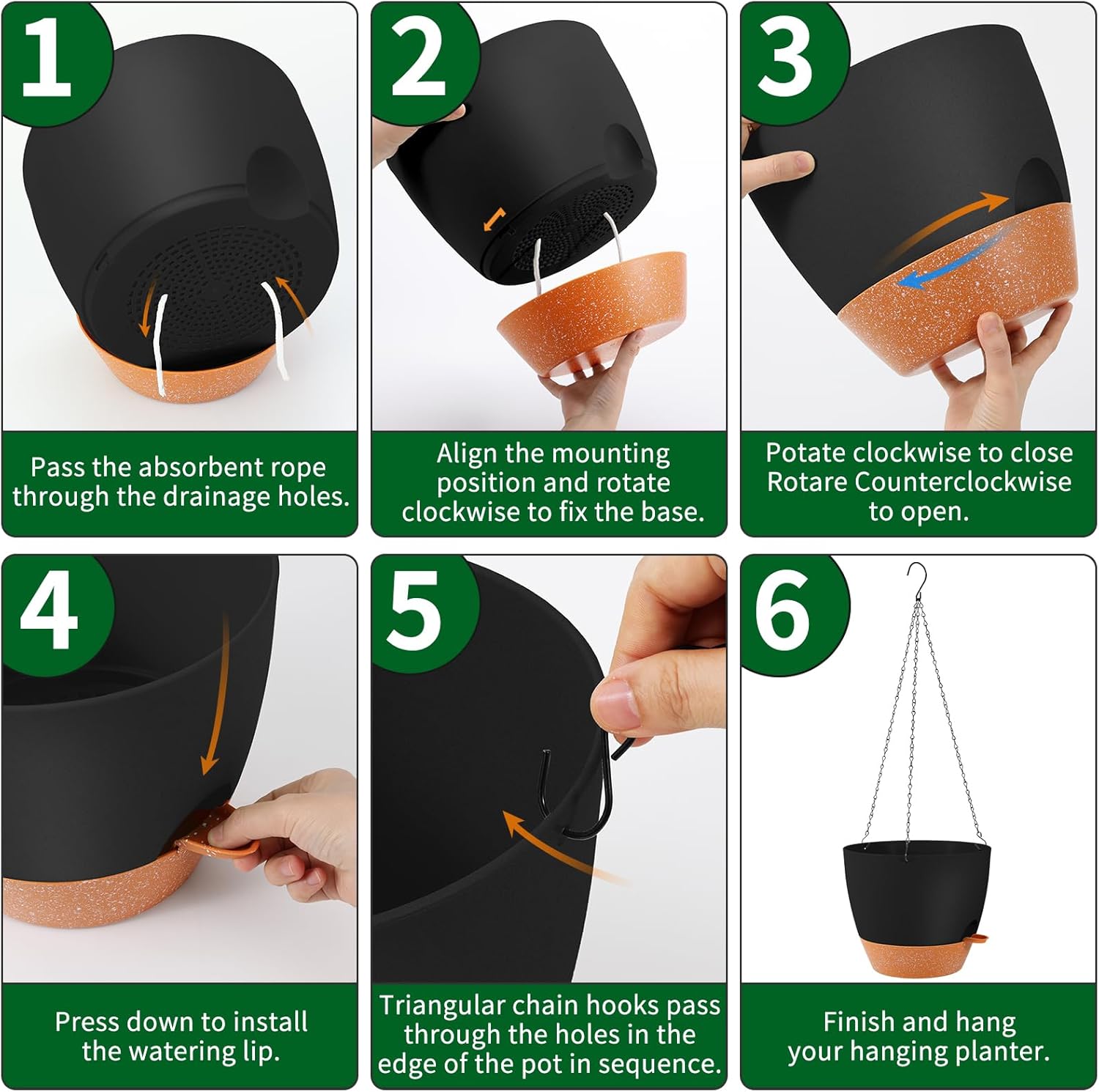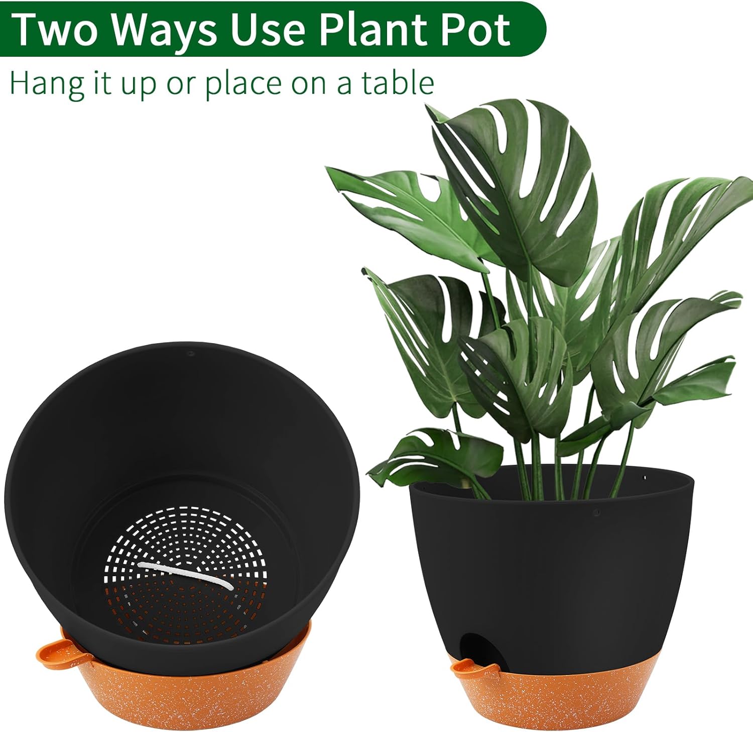 GARDIFE Large Hanging Planter, 12 inch Hanging planters for Indoor. Outdoor Plants, Self Watering Plant Pot, Plant Hanger, Black